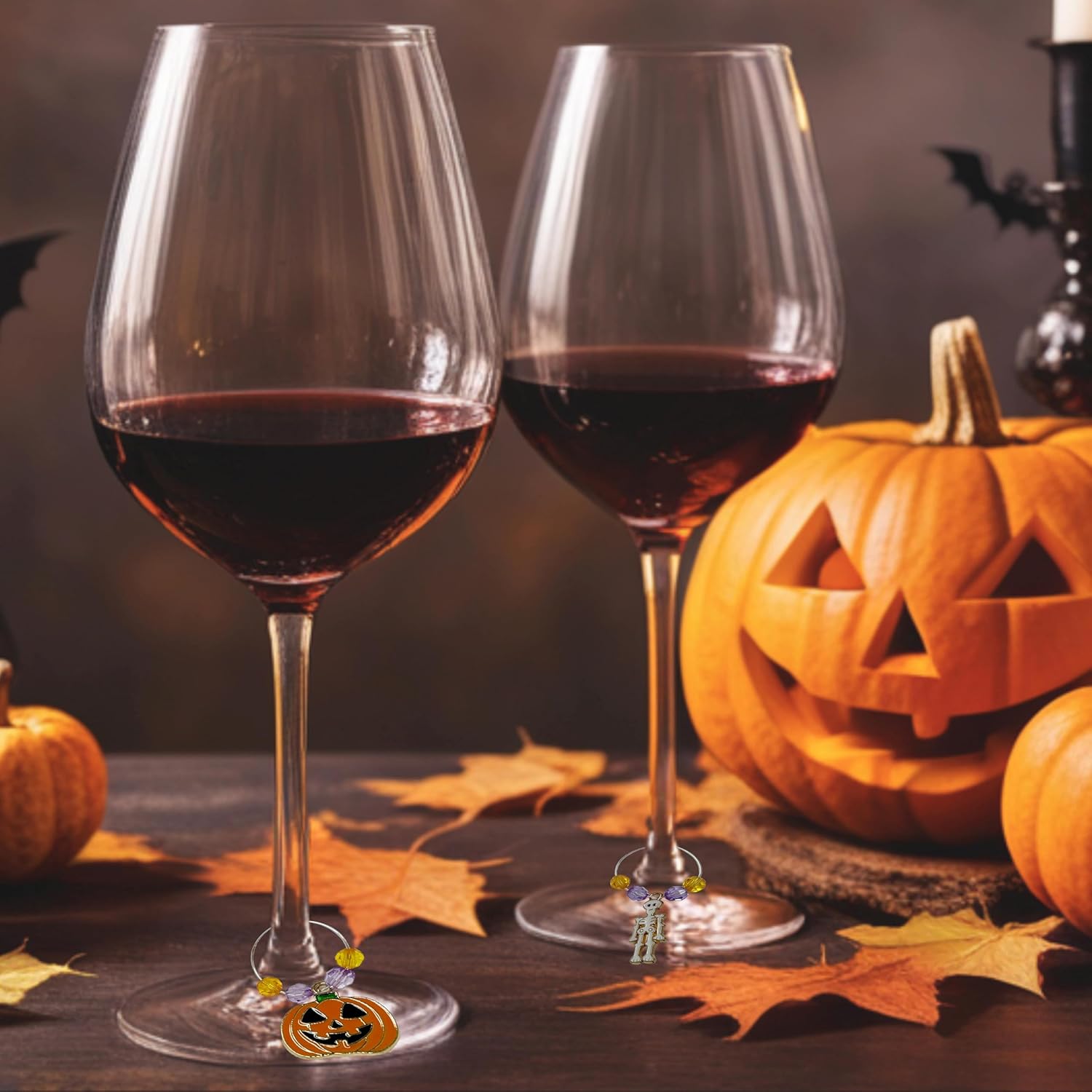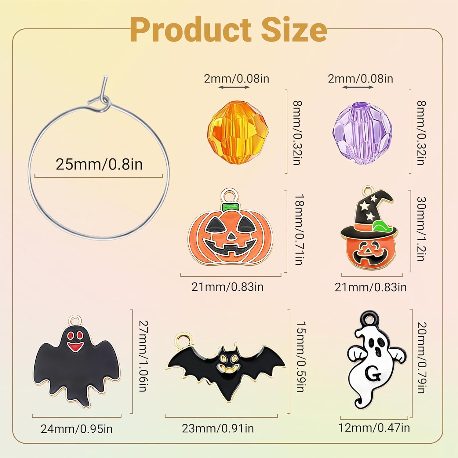 • SPOOKY DRINK MARKERS FOR GLASSES: Create your own ghoulishly unique drink markers! The collection features classic Halloween charms like jack-o'-lanterns, ghosts, witch hats, spiders, and skulls. Paired with shimmering orange and purple diamond-cut acrylic beads, these charms catch the light for an eerie glow, perfectly marking every glass of "witch's brew.