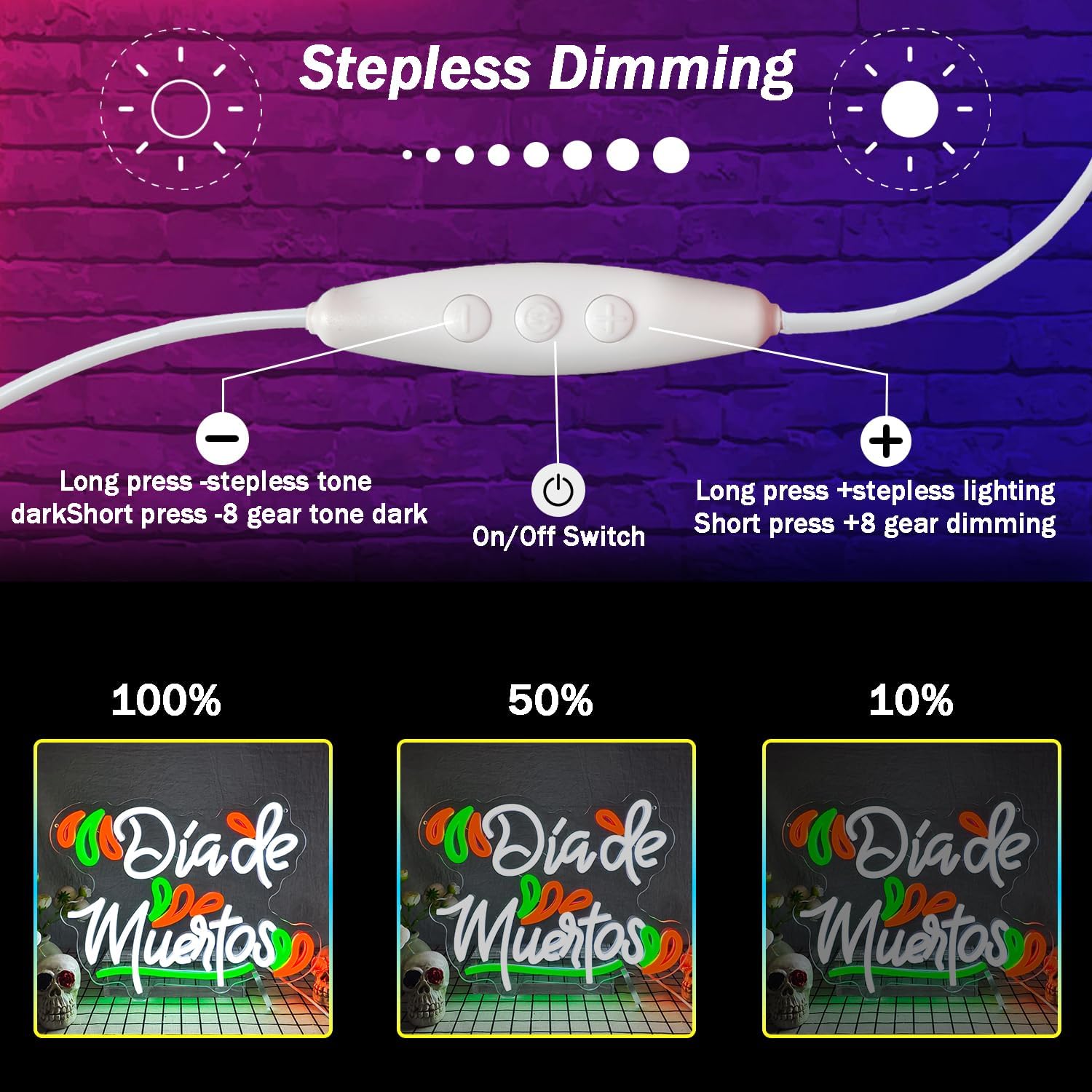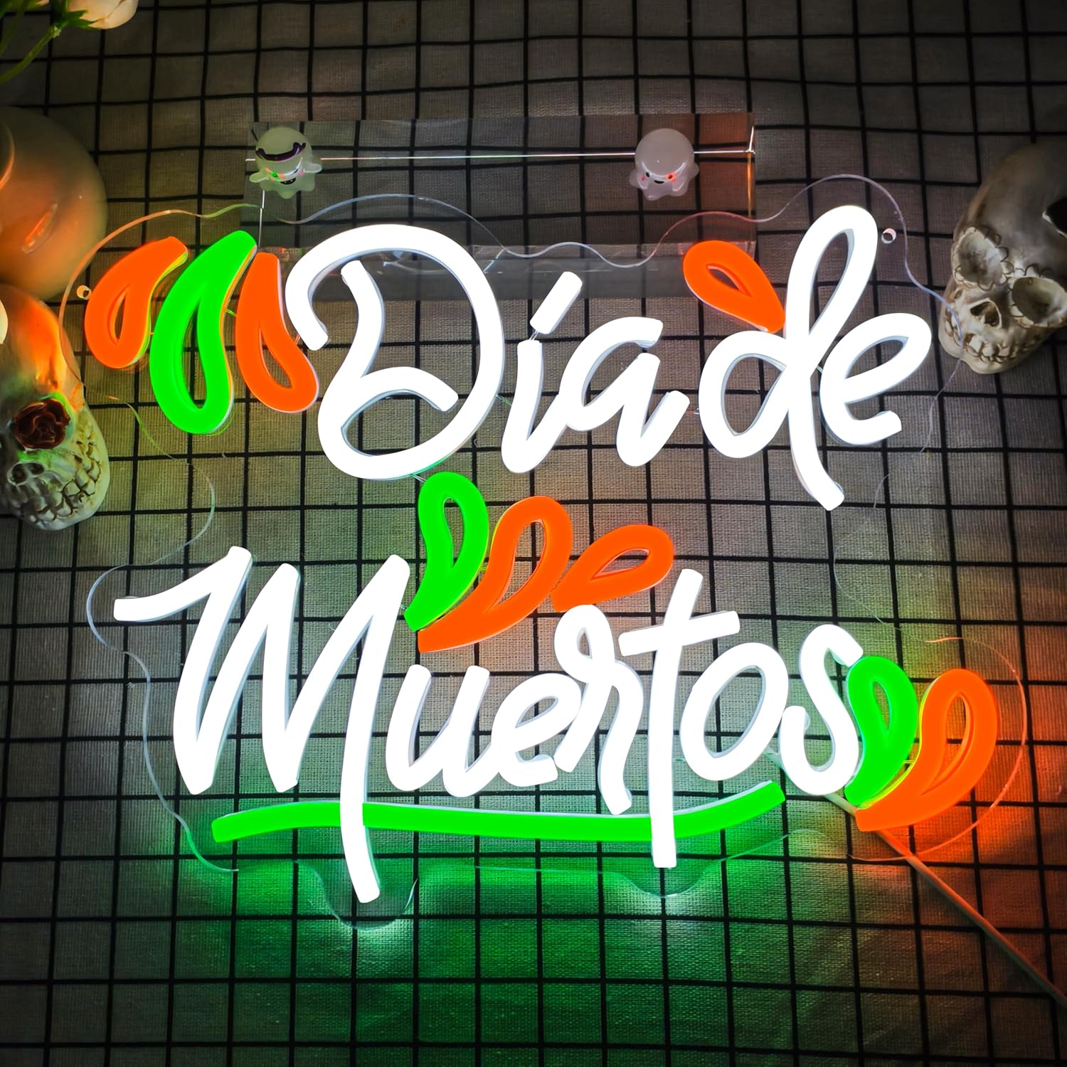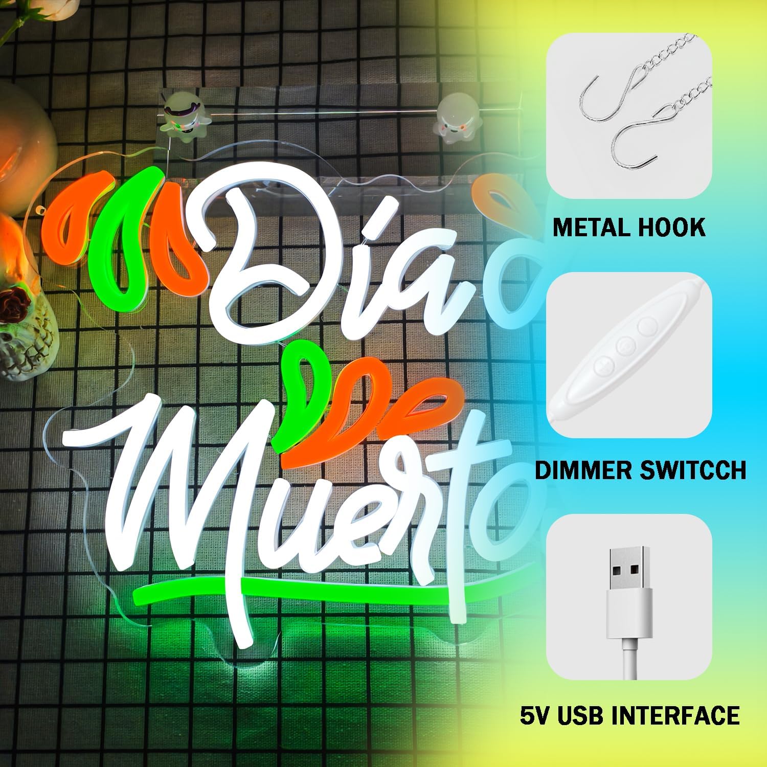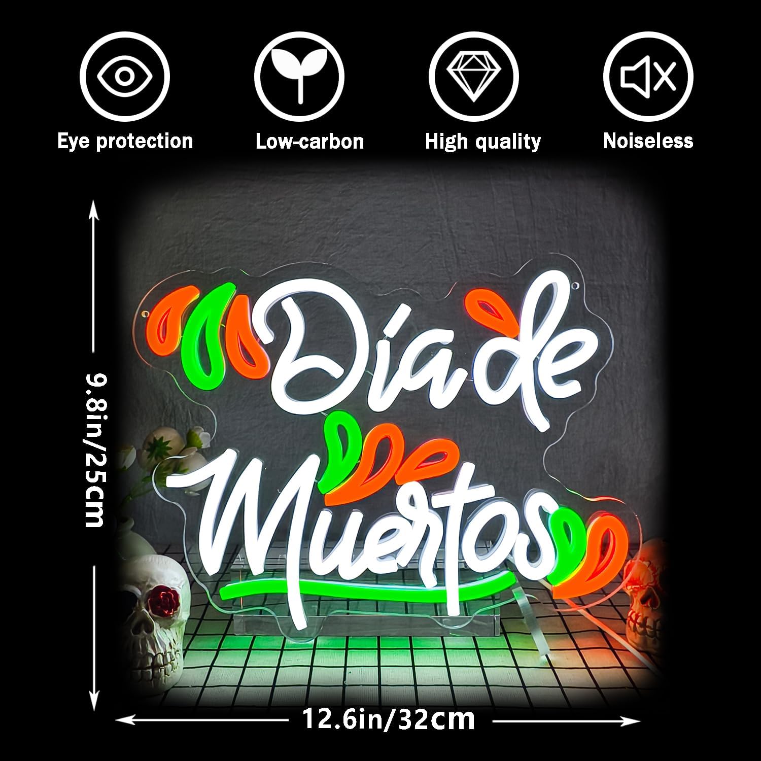 • 【Day of The Dead Theme Design】Celebrate Halloween or Day of the Dead with a Day of the Dead neon sign! Perfect for indoor decorating, it creates a spooky atmosphere and immerses your family in the Halloween and Day of the Dead spirit. Ready to scare and delight all your neighbors and guests. Throw a spooky party!