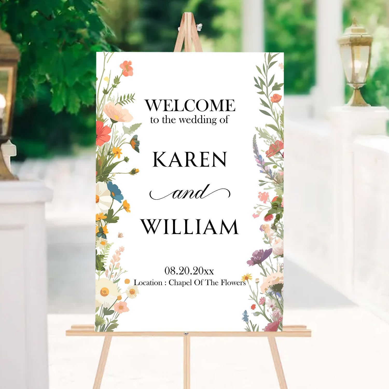 Personalized Wildflower Wedding Welcome Sign, Floral Personalized Sign for Reception, Printed Wedding Decoration