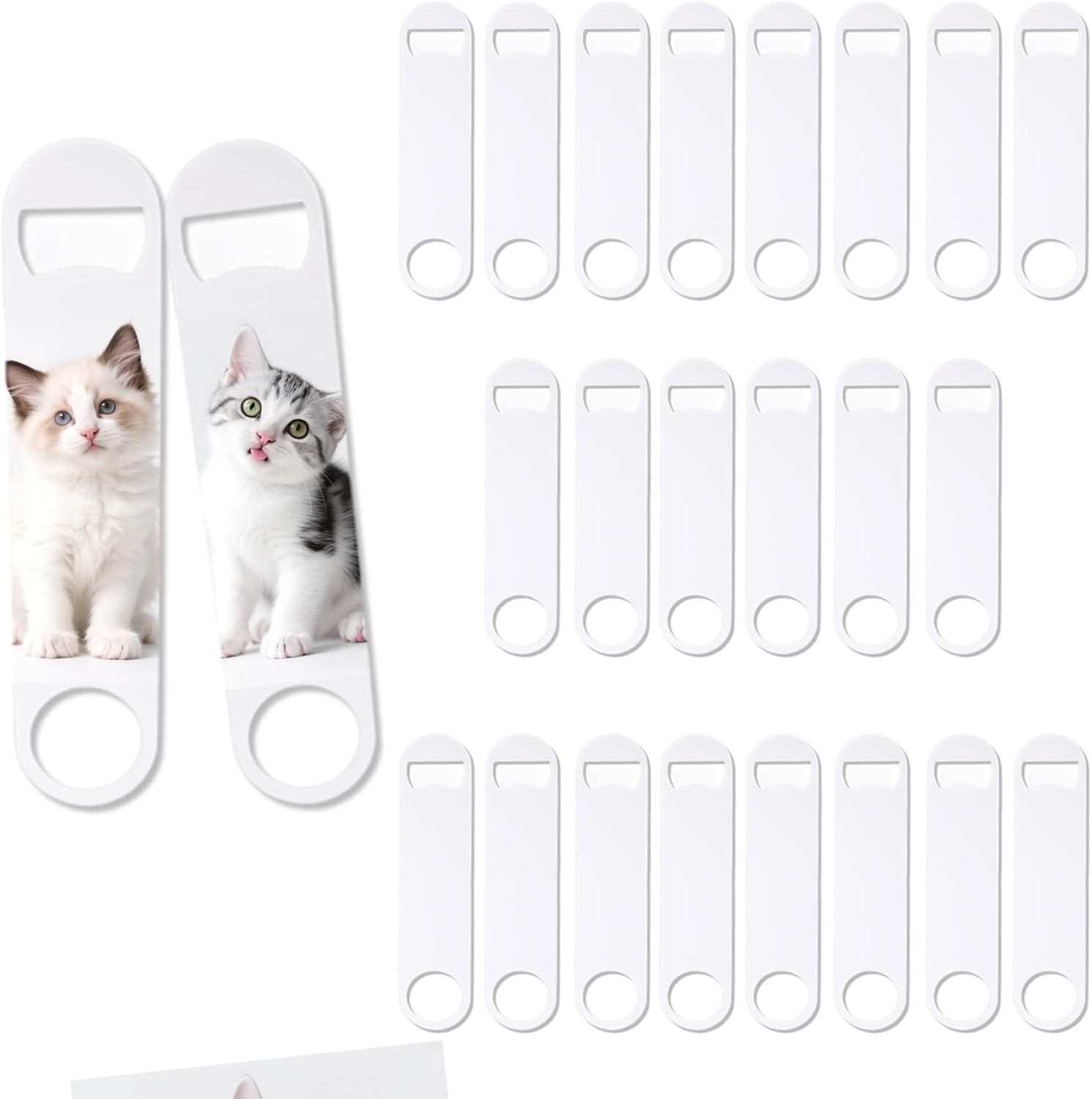 25 Pcs Sublimation Bottle Opener Personalized Blanks Flat Beer Bottle Opener Stainless Steel Sublimation Blank Products for Bar Kitchen Restaurant (White)