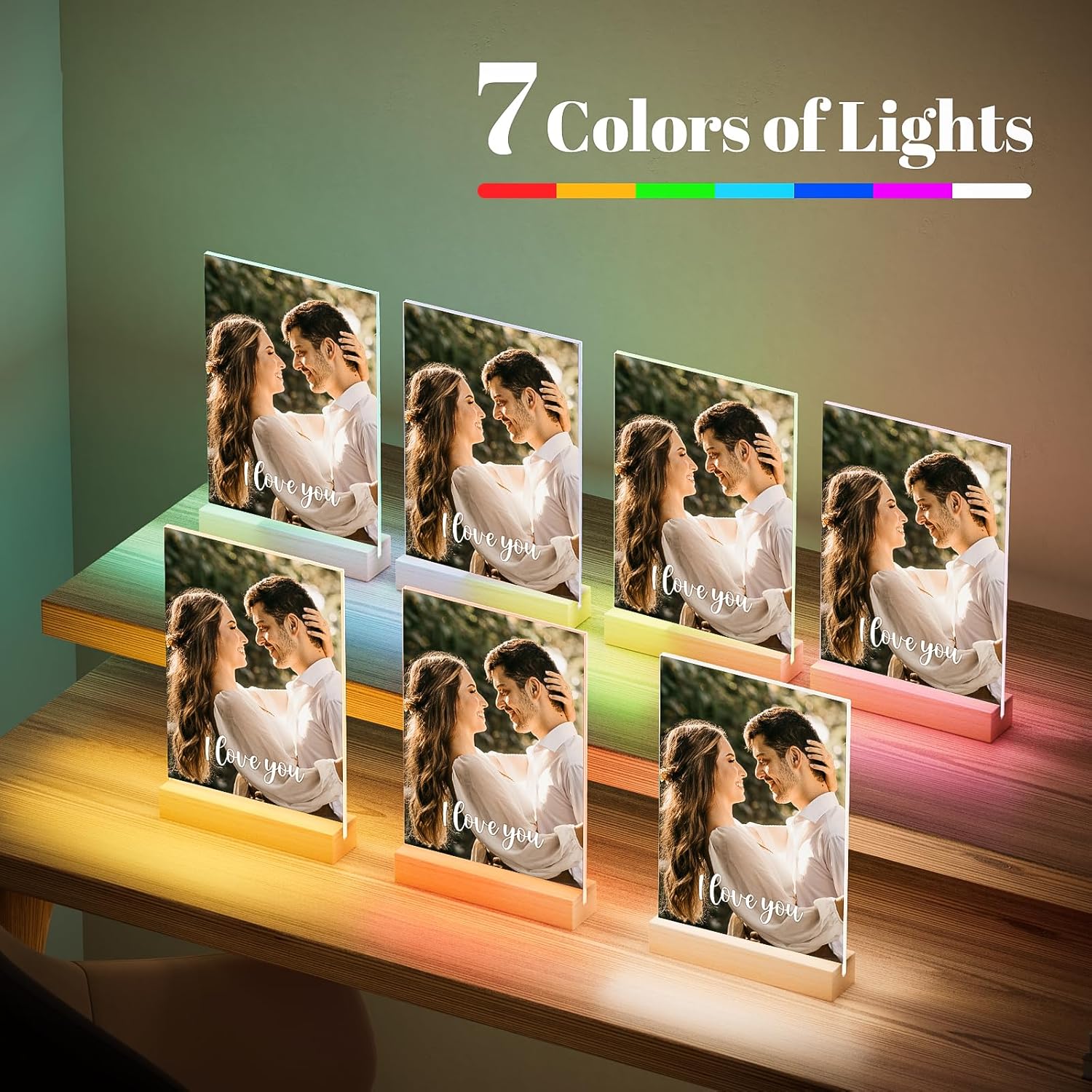 Custom Picture Frames with Photo, Personalized Photo Frame with Night Light, Customized Picture Frame, Personalized Anniversary Couple Gifts for Women Men Her Him Boyfriend Girlfriend
