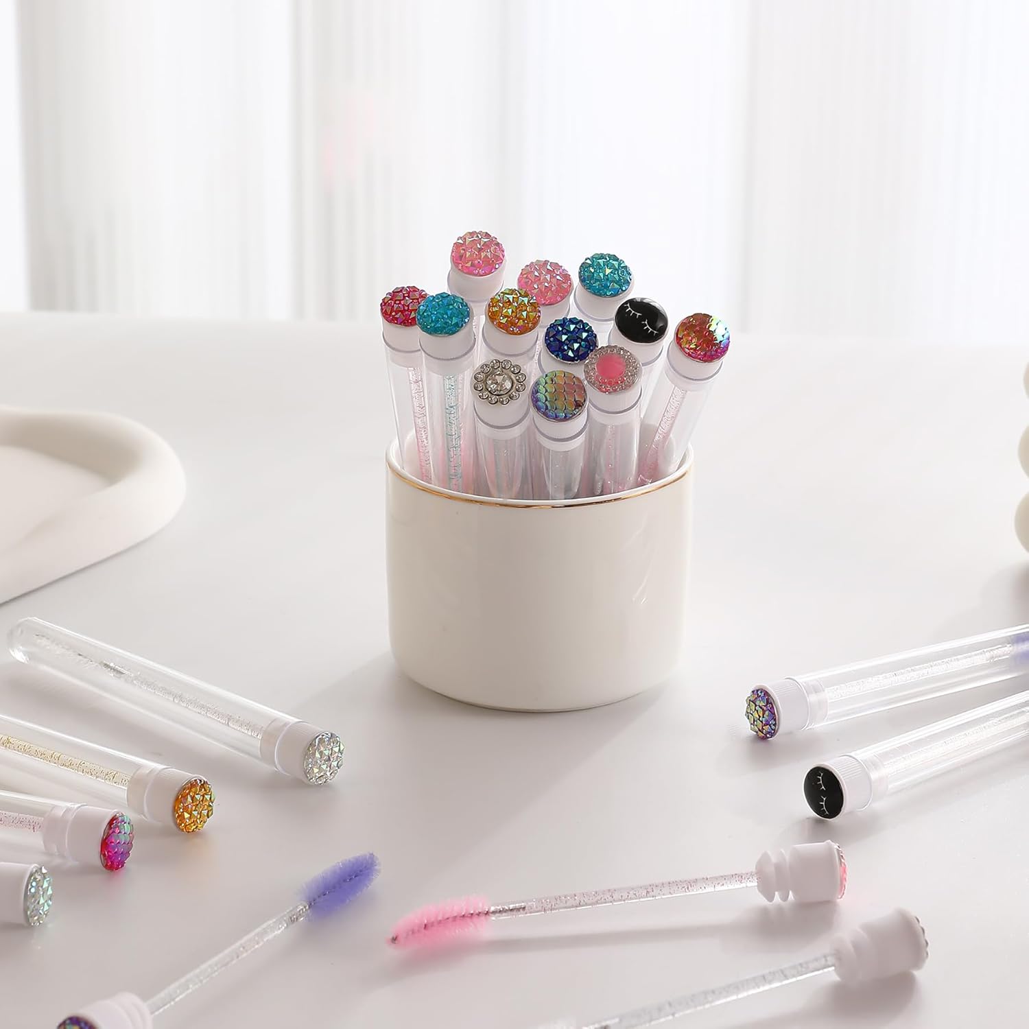 • Unique Design: With our eye-catching diamond detailing and practical design, our mascara brush set is not only functional but also a stylish accessory that will impress those around you. Whether you're at a party, on a date, or simply out with friends, our mascara brush set is sure to turn heads and spark conversations. Get ready to stand out and shine with our innovative beauty essential!