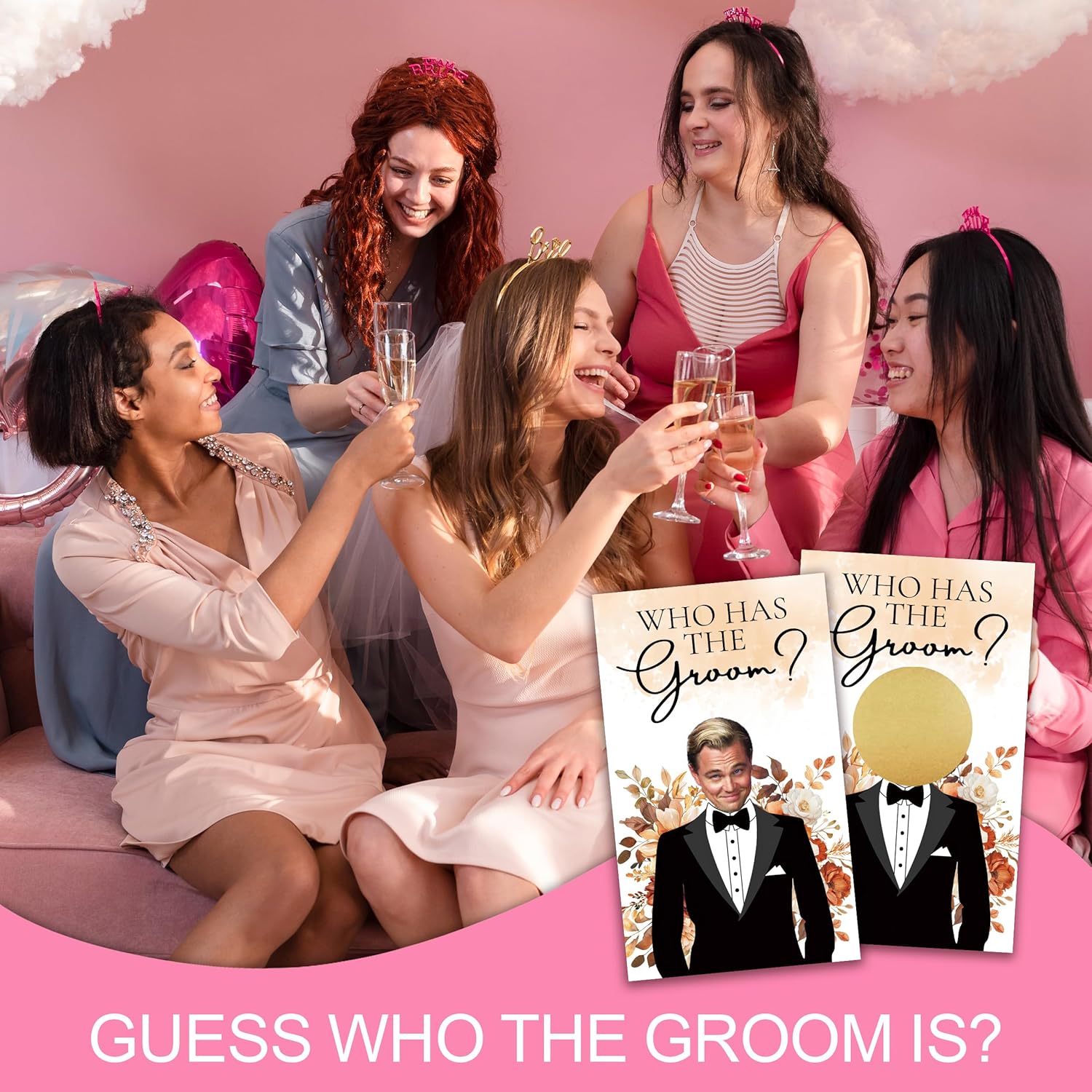 Floral Bridal Shower Games,Who Has The Groom Scratch Off Card, 41Pcs Scratch Card Off Bridal Shower, 3.5"x 2.1" Funny Bachelorette Party Game Favor Decor, Engagement Party Ideas Activities-A03