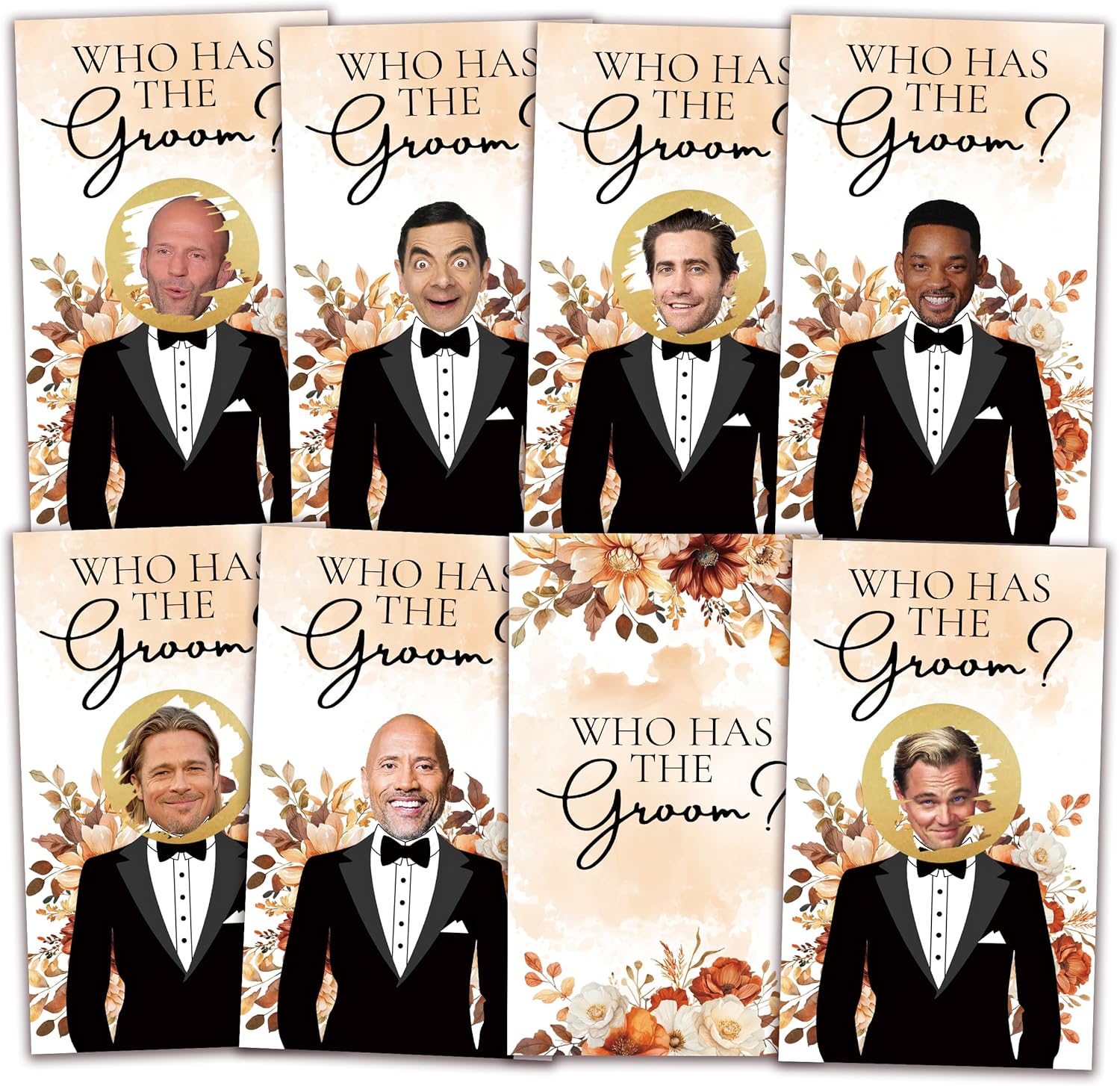 • How to play? Print the groom’s image on paper, cut it into 1" circle and stick it onto blank card. Put the round scratch-off stickers on the cards cover the groom's image and the celebrities’ image. On the day of the event, just distribute to each guest. Whoever reveals the true groom is the winner