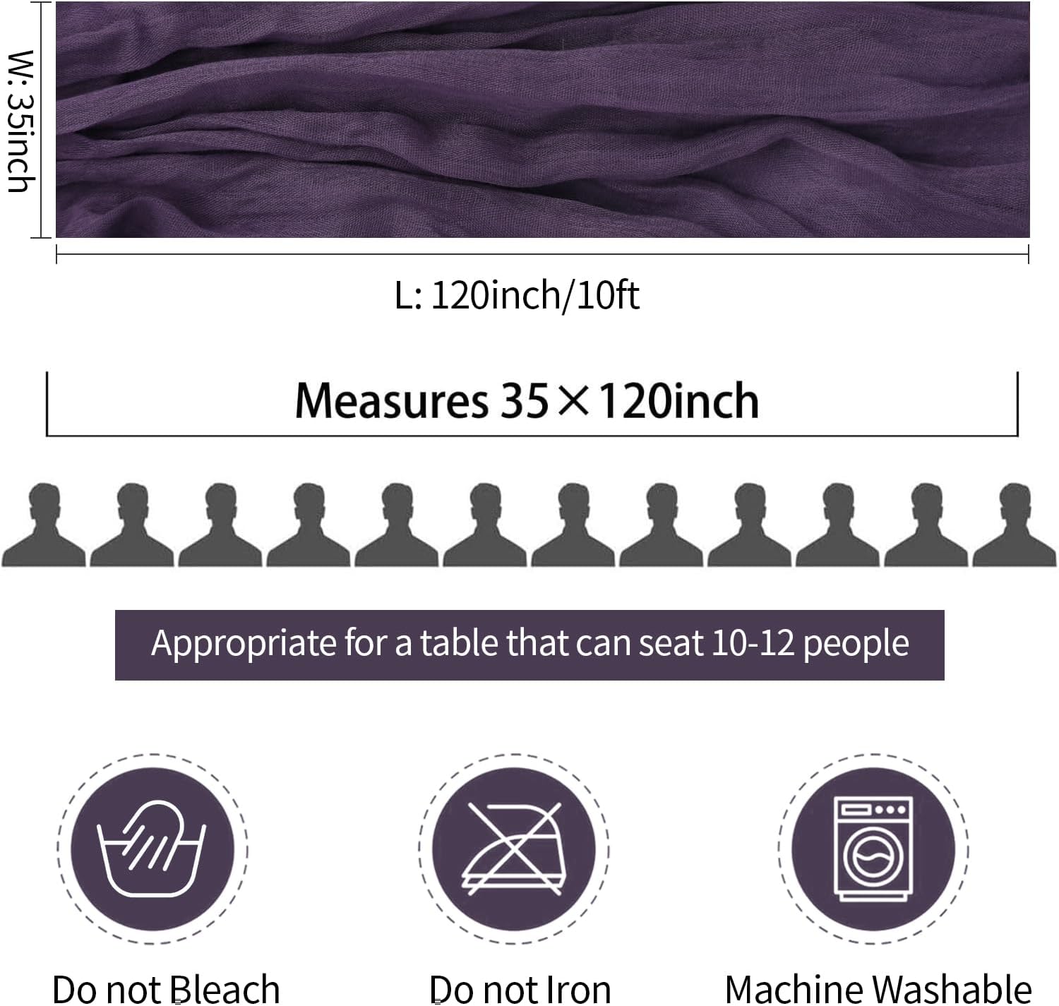 • 🍇【Care Instructions】These vintage lavender cheeecloth table runner are recommended for hand wash in cold water with mild detergent, or machine wash in the gentle cycle with a laundry bag; In order to maintain wrinkled texture, please do not iron or use hot water, lay flat or hang dry, which are better for keeping these dark purple gauze cheesecloth table runner for a long time use. Please kindly noted that there might be color variation due to screen resolution and limitations in photography.