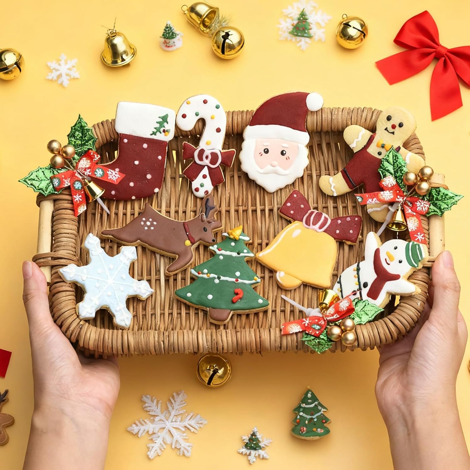 • πŸŽ„ 【Christmas Baking Cutter with Infinite Creativity】This 9-piece set of cookie cutters is more than just a cookie-making tool! Easily create cookies, fondant decorations, and chocolate shapes. You can also use it to slice sandwiches, create cheese platters, and cut fruit tarts!