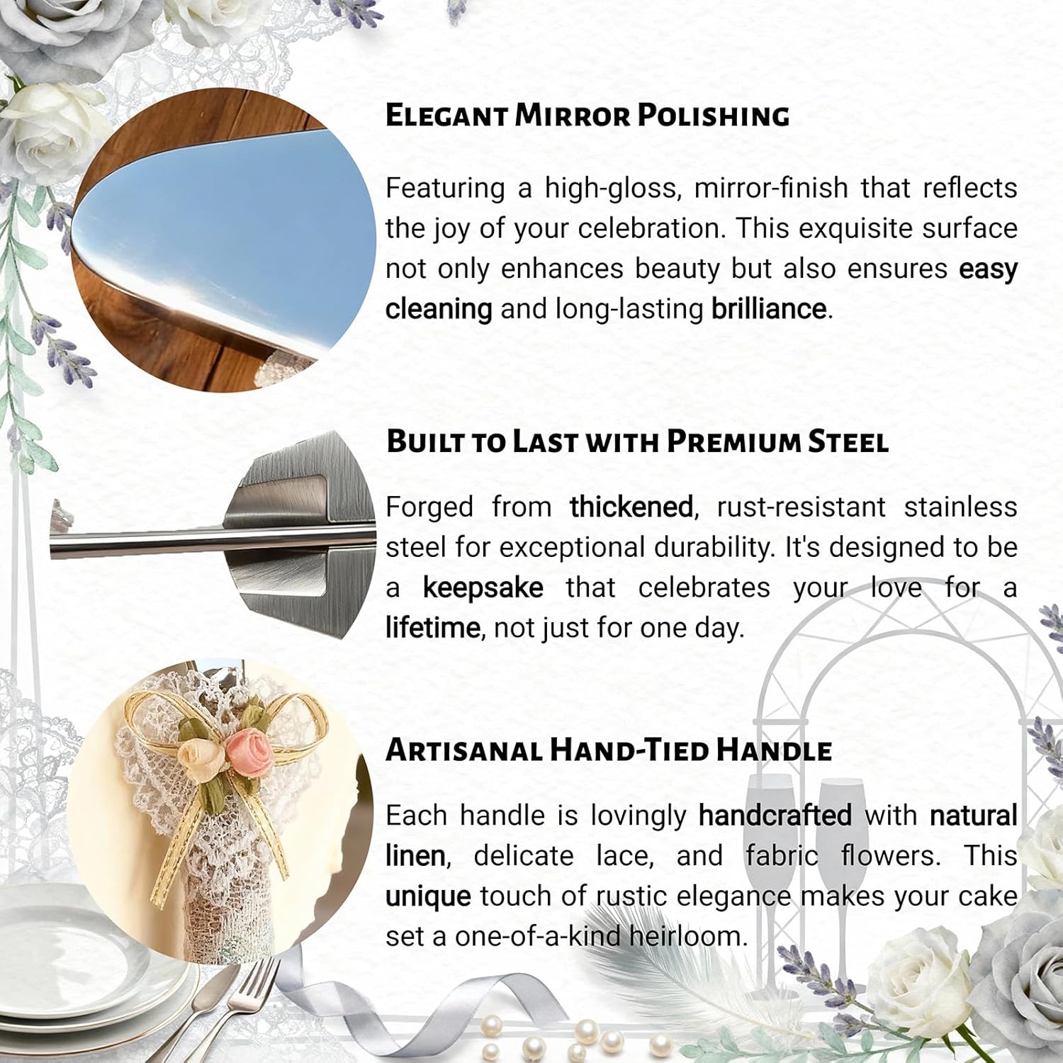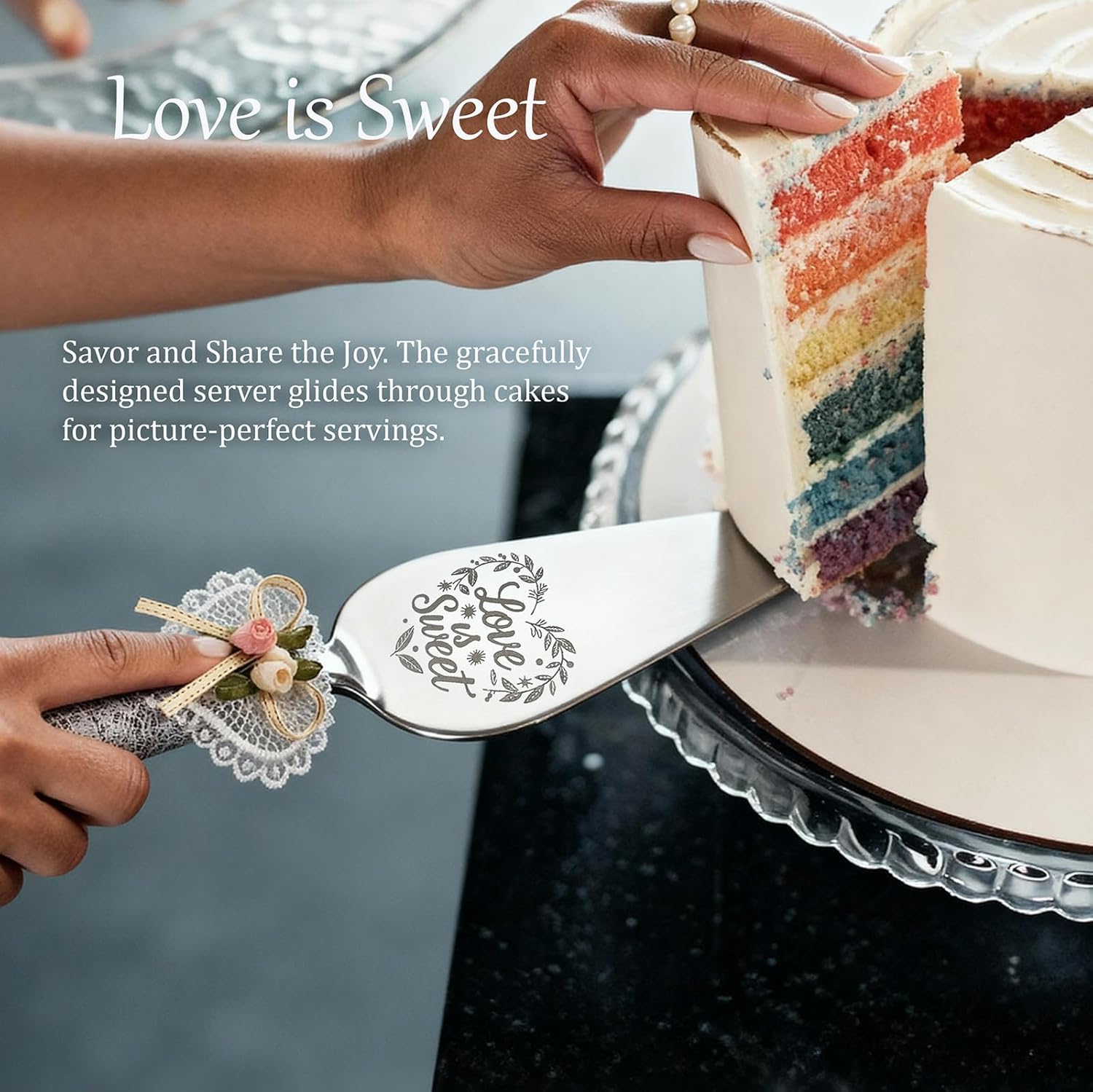 • Elegant Wedding Cake Cutting Set – Includes a 10.83-inch serrated cake knife and 10.04-inch server, designed for weddings, anniversaries, engagements, and bridal showers.