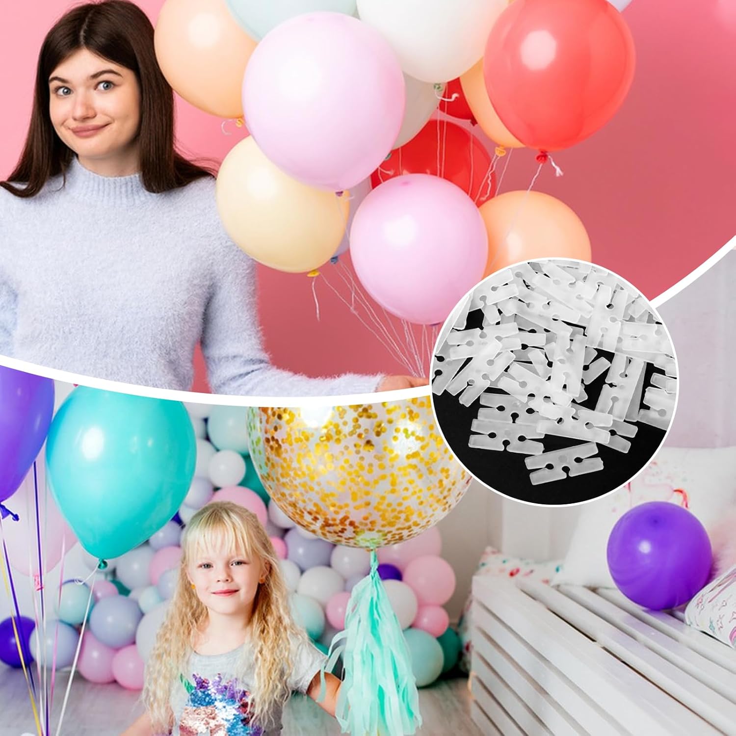 • Essential for All Celebrations -balloon clips to tie off balloons with H-shaped design provides a secure seal, replacing messy knots or flimsy string that can pop balloons,you’ll have plenty for balloon arches, garlands, centerpieces, or individual balloons. Ideal for decorating any type of party or event, such as weddings, Christmas, birthday parties, baby showers,holiday gatherings and any Events, these clips simplify setup and ensure your decor stays vibrant from start to finish.