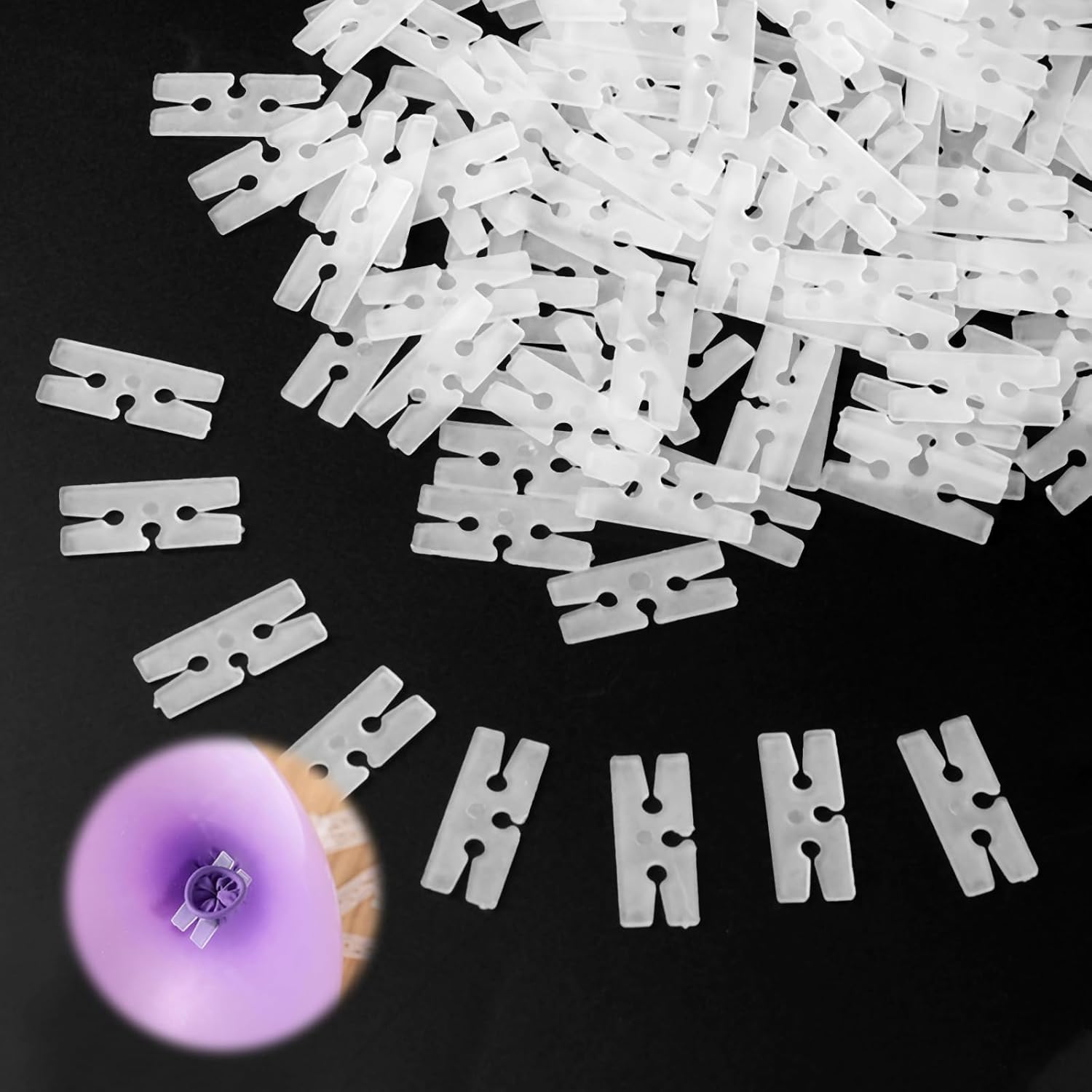 • 100-Pack of H-Shape Balloon Clips - Includes 100 clear plastic balloon ties, perfect for bulk balloon decorating—enough for large events like weddings or birthday parties, with spares for last-minute additions.