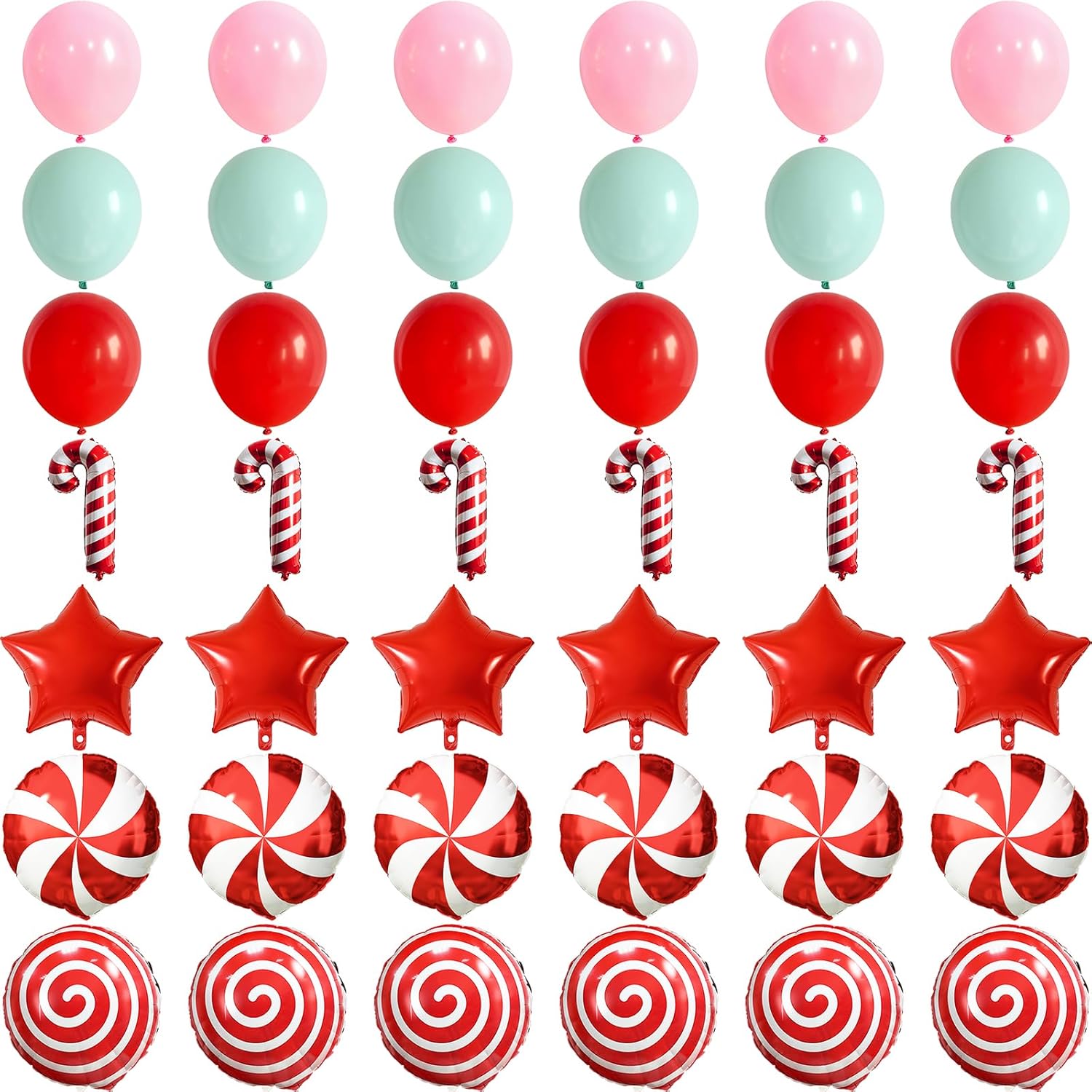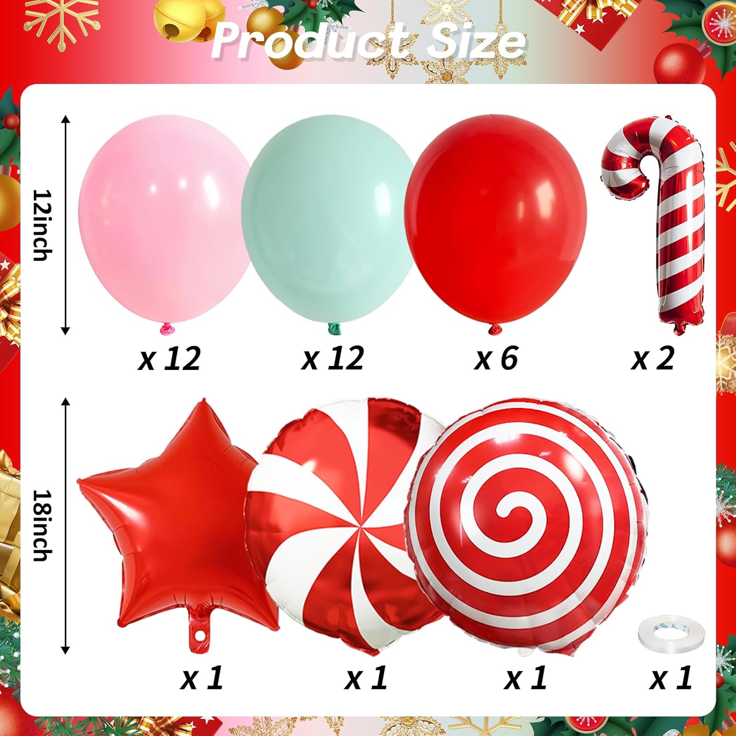• Party Balloons Set: The light green and pink christmas balloons set have 35pcs 12inch helium balloons, include 12pcs pastel light pink balloons, 12pcs pastel green mint balloons, 6pcs red balloons, mini cane foil balloons *2, 18 inch foil balloons (star balloons *1, candy balloons *1, swirl / lollipop balloons *1), and comes with 1pc balloon ribbon.