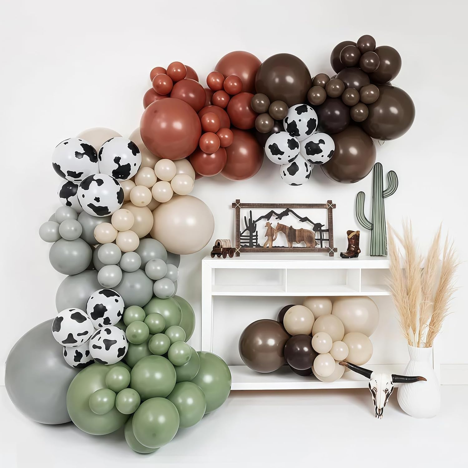 • Complete Cowboy Balloon Set: This 12inch 35pcs set includes 7pcs retro brown balloons, 7pcs coffee brown balloons, 5pcs cow balloons, 8pcs slate blue balloons, 8pcs sand white balloons, and 1 ribbon. Perfect for western themed party decorations, cowboy party decorations, or rodeo party decorations.