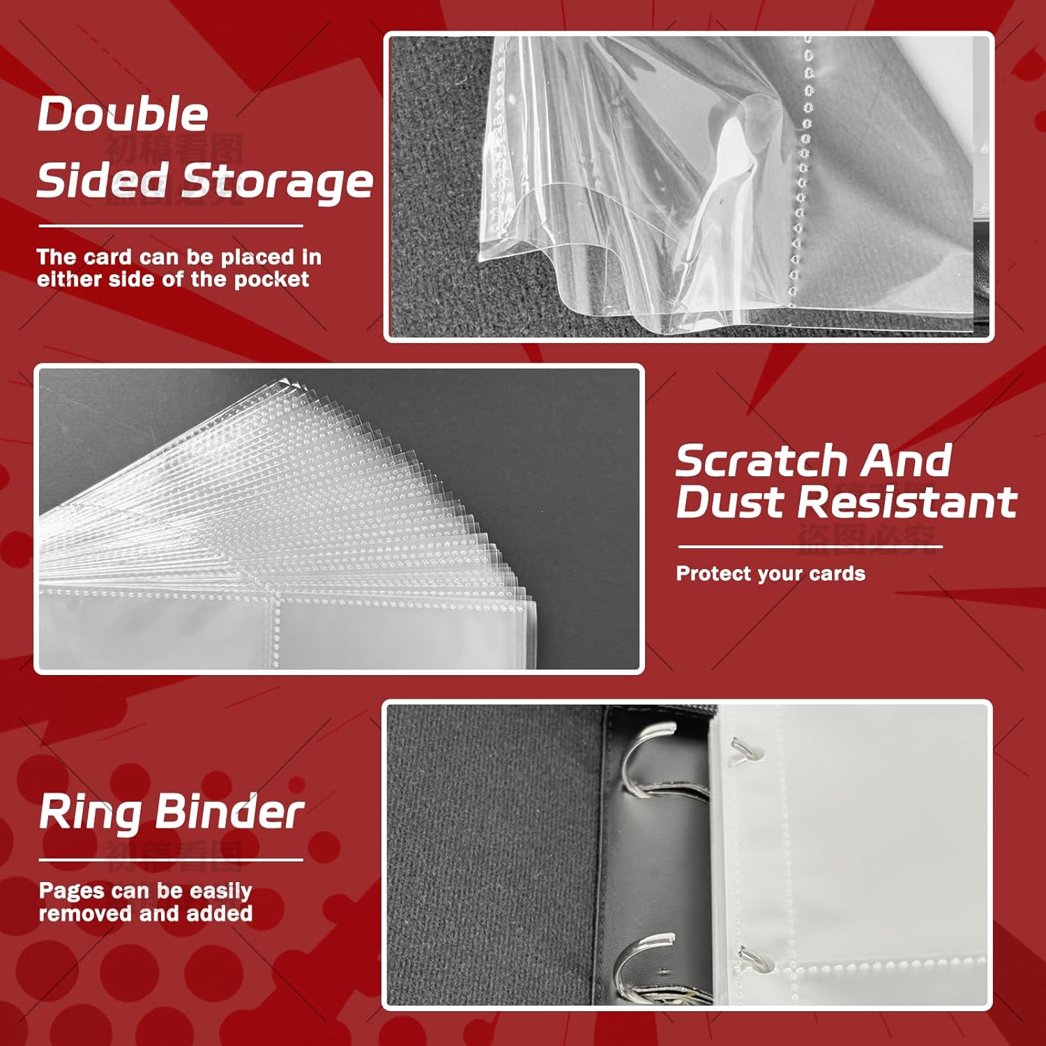 • 【Secure And Durable】 The binder cards features a robust triple-ring mechanism, allowing pages to be added or removed as required. The zip closure effectively prevents cards from falling out, while the wrist strap ensures convenient portability.