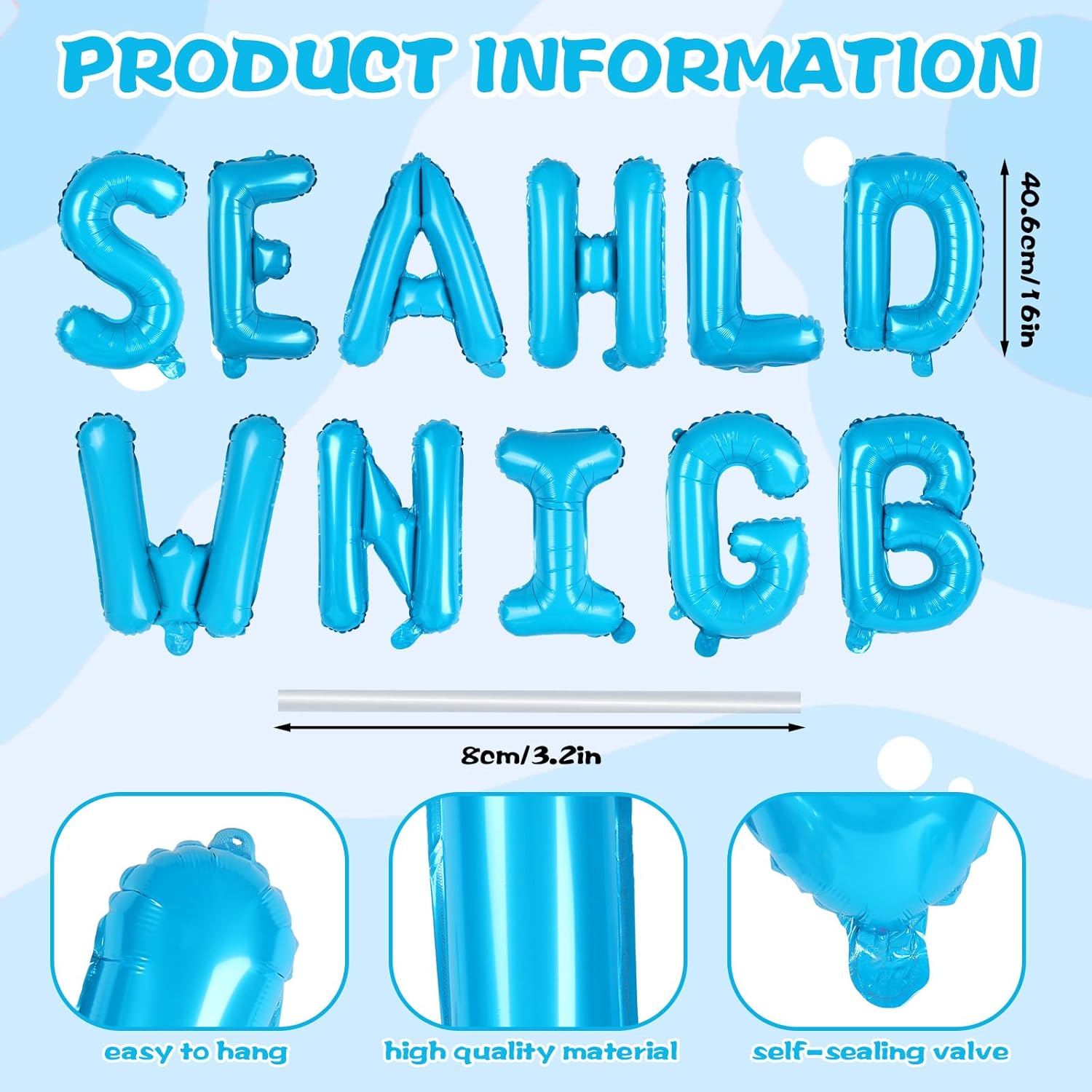 • DELICATE DESIGN: Our balloon set is designed with the alphabet of SEASHELLS AND WEDDING BELLS, adopting the color of blue, vibrant and elegant, will add a touch of charm to your party decorations