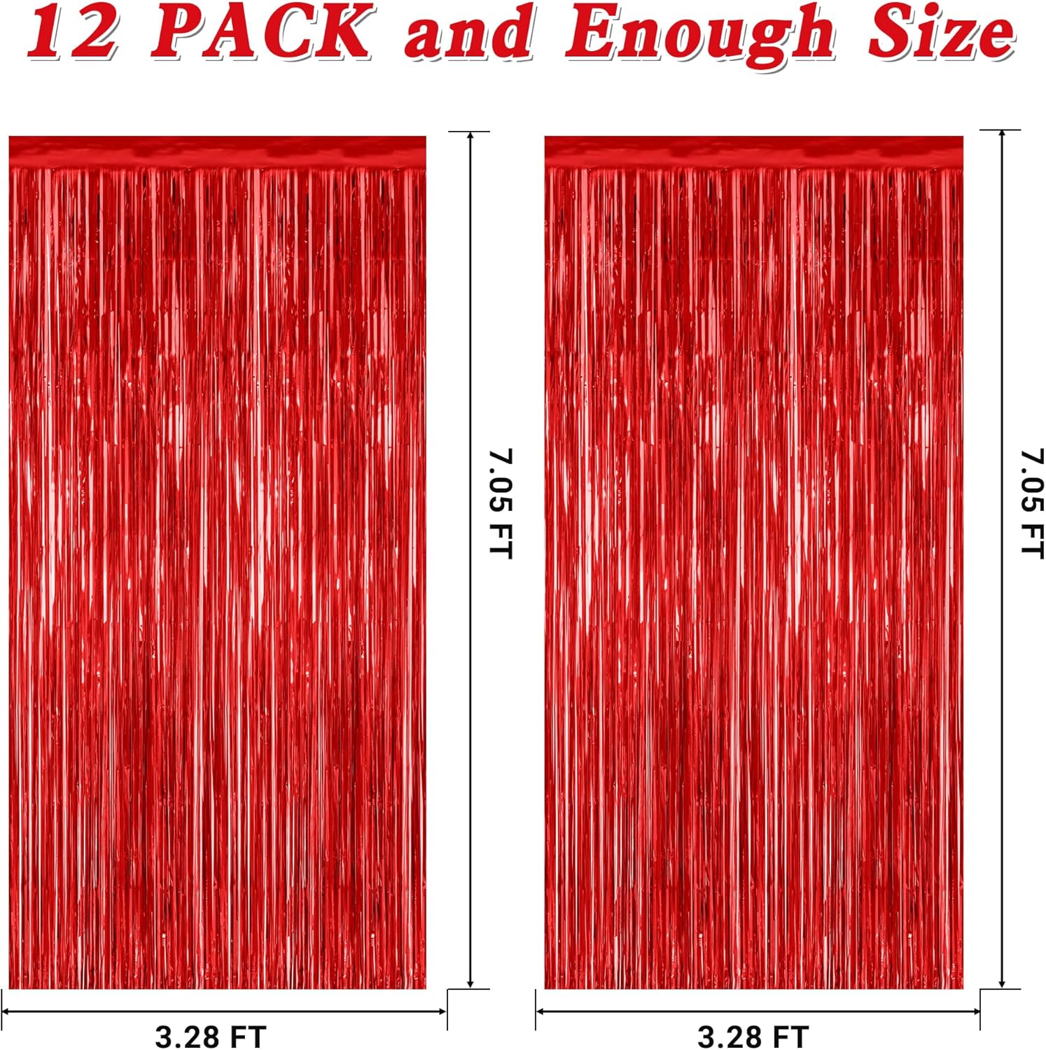 12 Pack Red Curtains, 3.28 FT x 7.05 FT Party Streamer, Metallic Party Backdrop Birthday Streamer Foil Curtains, Fringe Tinsel for Red Party Decor Casino Theme Decorations Party Supplies