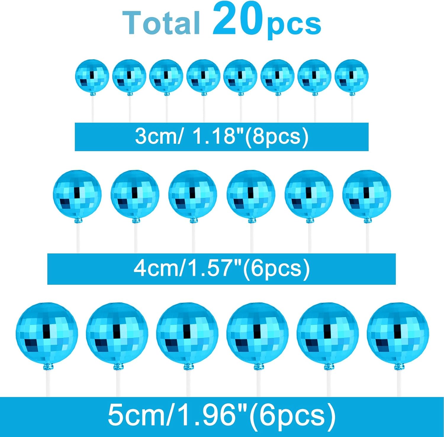 ASTARON 20 Pcs Disco Ball Cake Topper Decorations Sticks Blue Cake Balls Picks Toppers for Birthday Anniversary Disco Retired Theme Party Decorations