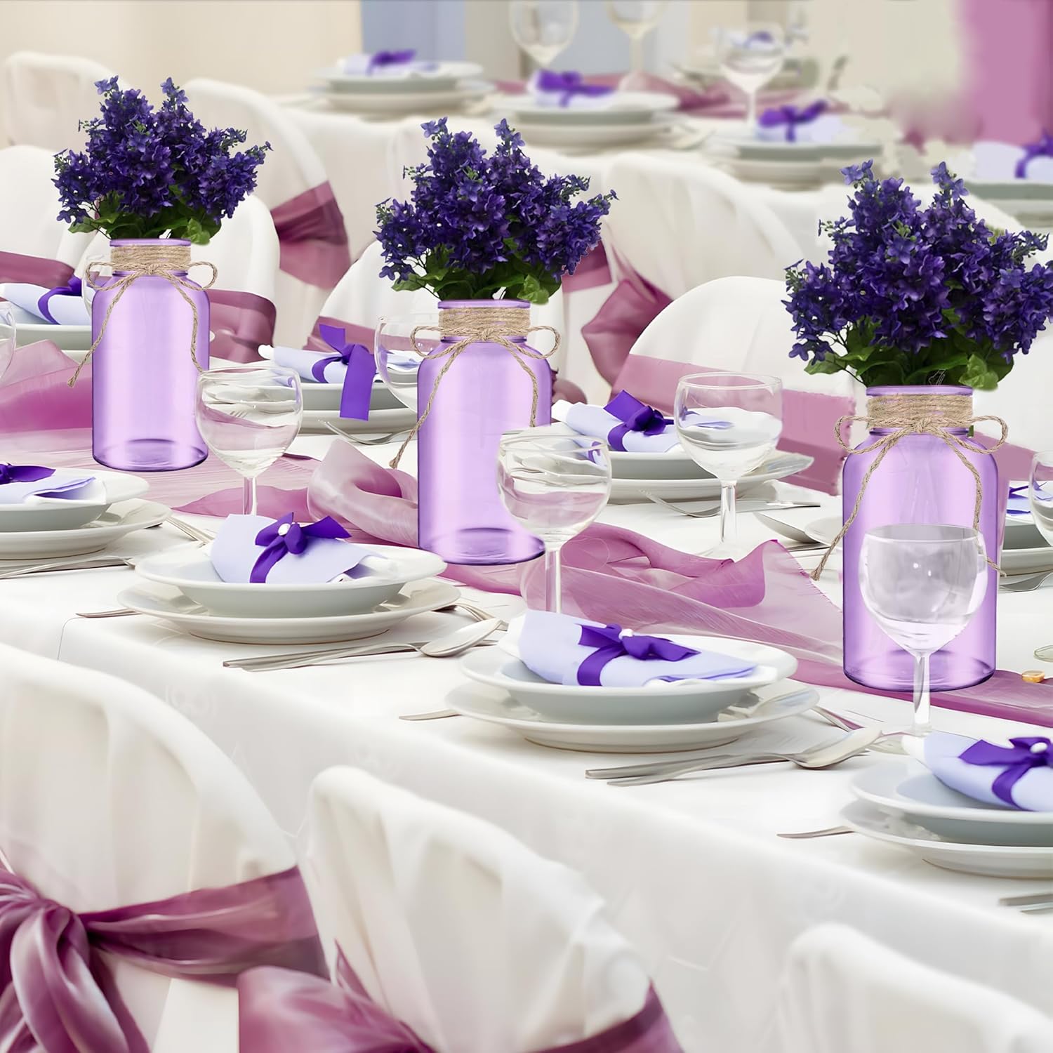 • 🏺 Commercial-Grade Bulk Vases: 6-pack vintage glass centerpiece vases designed for weddings, banquets, and catering businesses. Purple mason jars offer reusable rustic charm for floral arrangements or candlelit tables