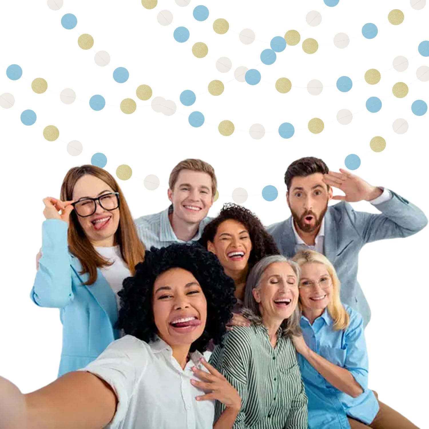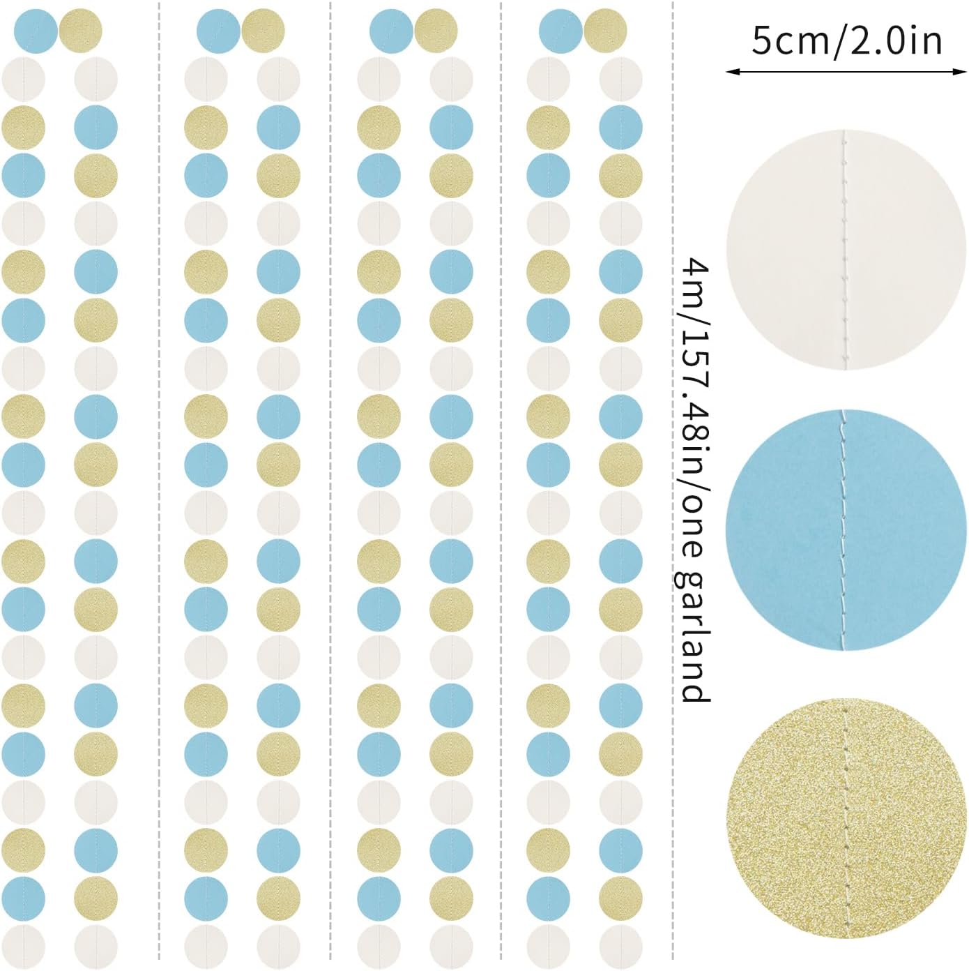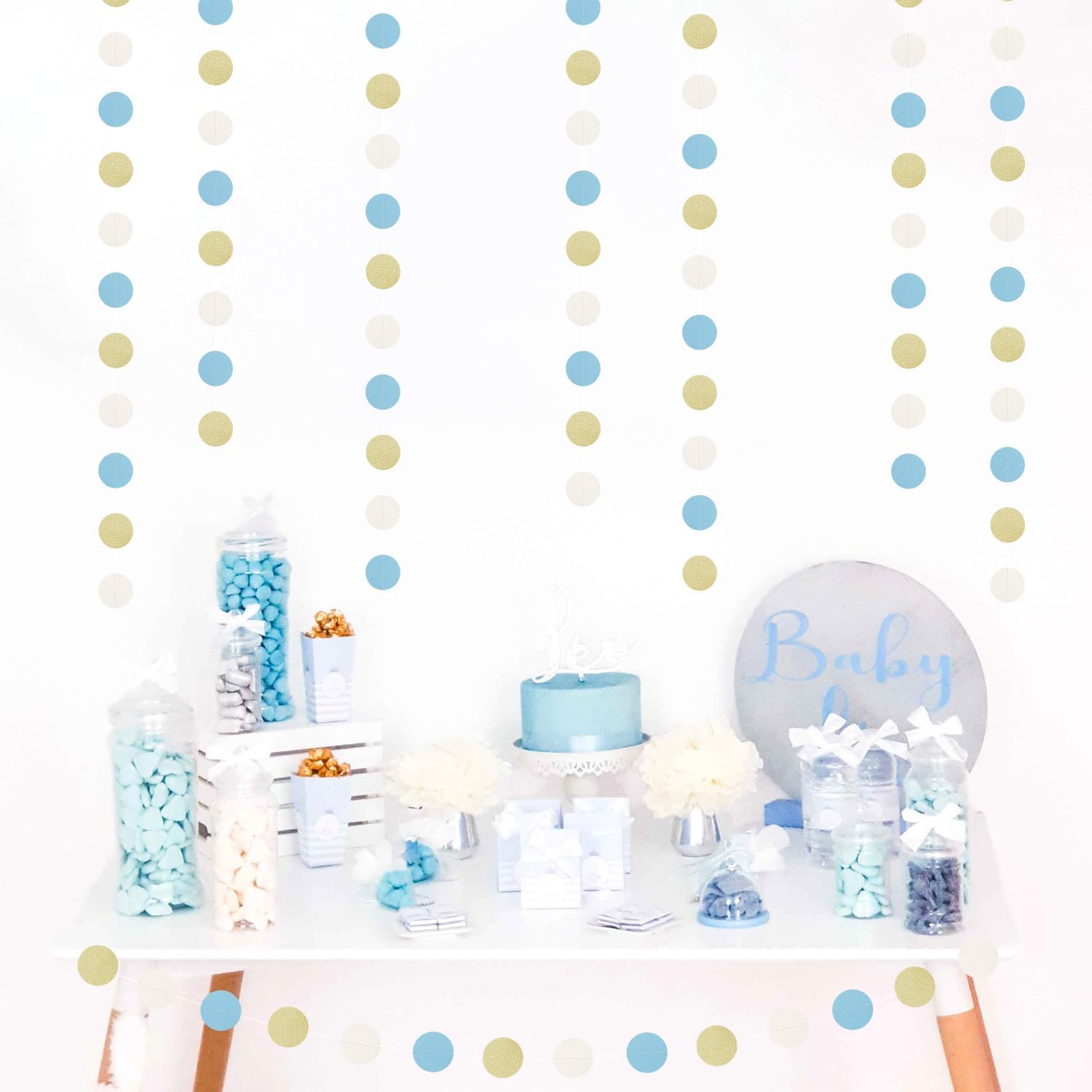 • 【Material】The material is eco-friendly colorful paper,Dusty-Blue Beige Gold.You can cut to any length you want if you need shorter length.The dots cut very neatly.