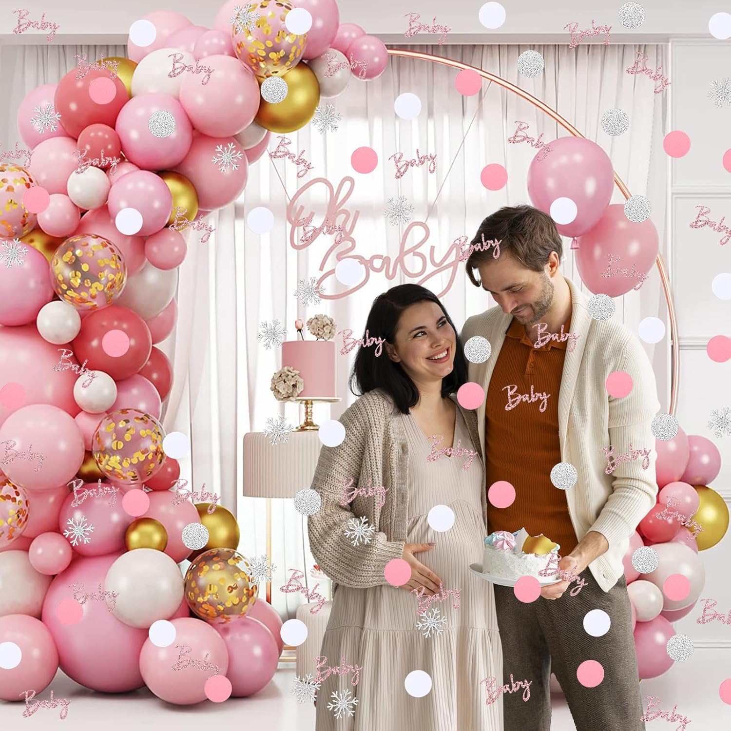 • Diverse Patterns: Winter baby shower decorations are designed with exquisite and diverse pattern, including silver flashing snowflakes, pink-themed "Baby",match with white, silver and pink polka-dot confetti. Various patterns are combined with snowflake elements, winter wonderland baby shower decoration is suitable for Christmas and winter atmosphere, and adds a romantic, warm and seasonal visual experience to the baby shower