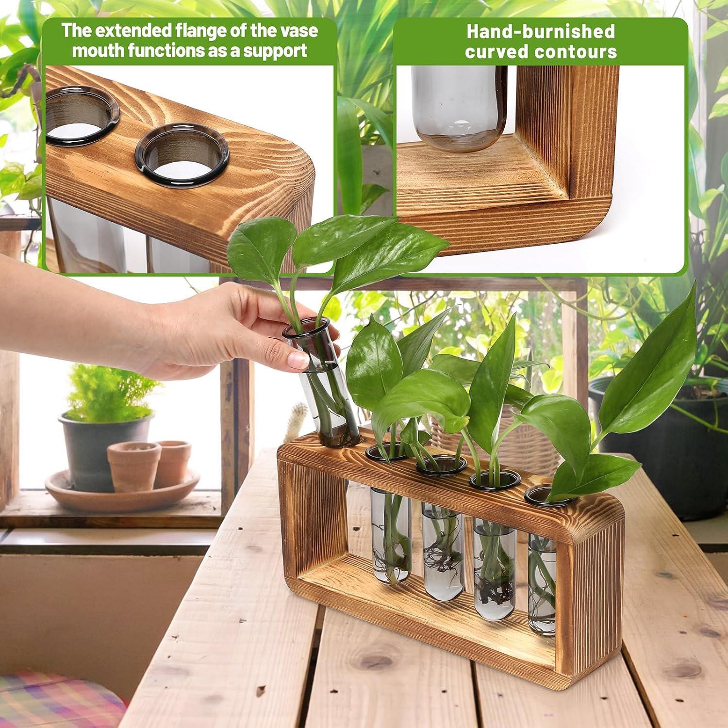 Glass Plant Propagation Station with 5 Test Tubes Colorful Planter Vase Birthday Gifts for Women in Wooden Stand