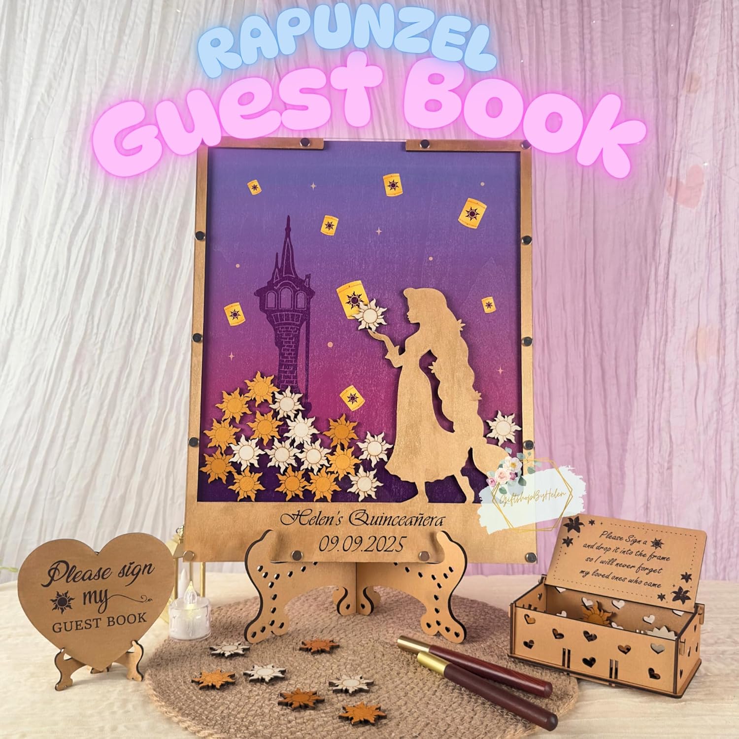 Princess Guest Book Alternative | Quinceañera Sweet XV Wooden Dropbox Frame with Lantern Tokens | Personalized Fairytale Guestbook Keepsake