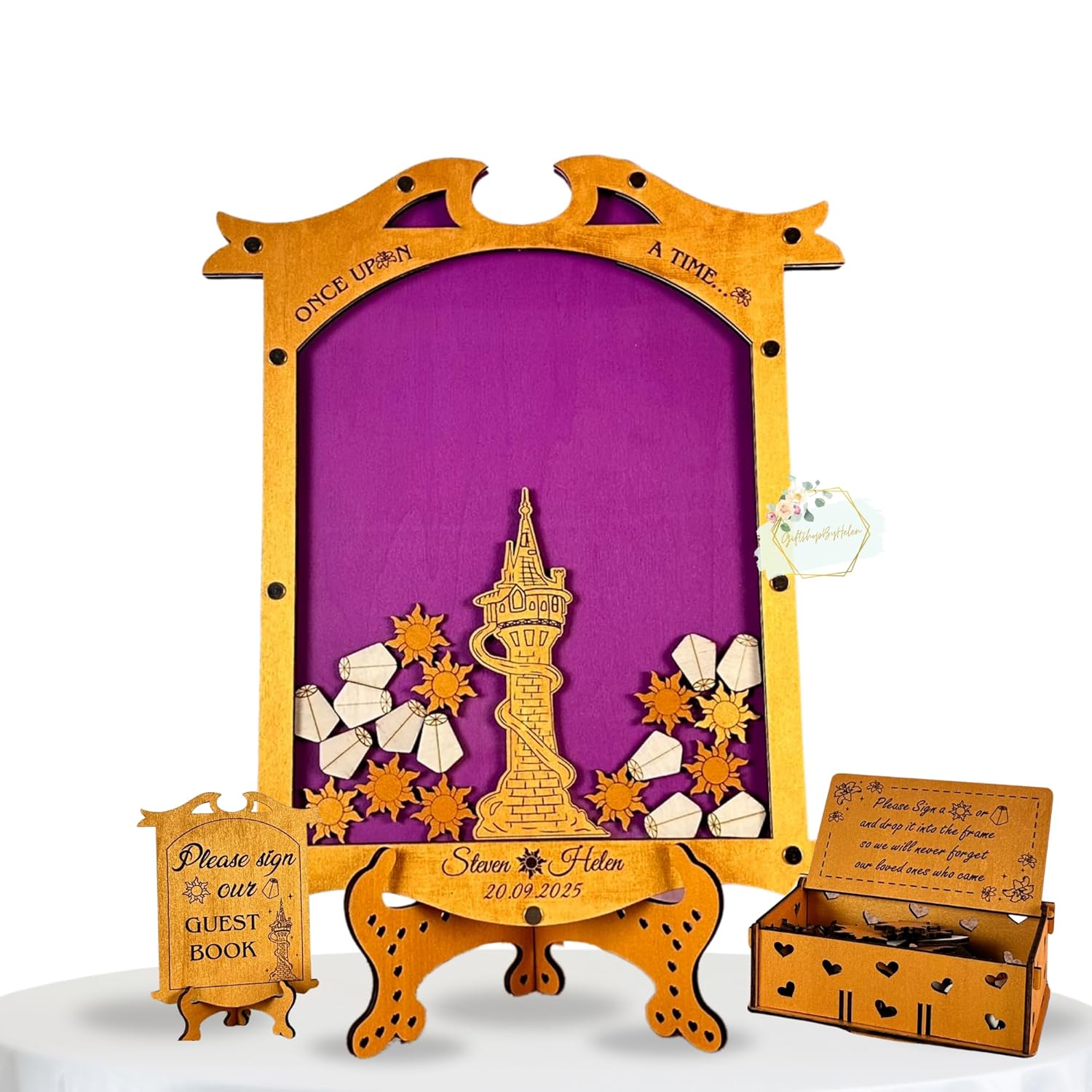 • 🏰 Fairytale Guest Book Alternative – Inspired by Tangled, this wooden drop box lets guests leave signed tokens, creating a magical keepsake for your wedding.