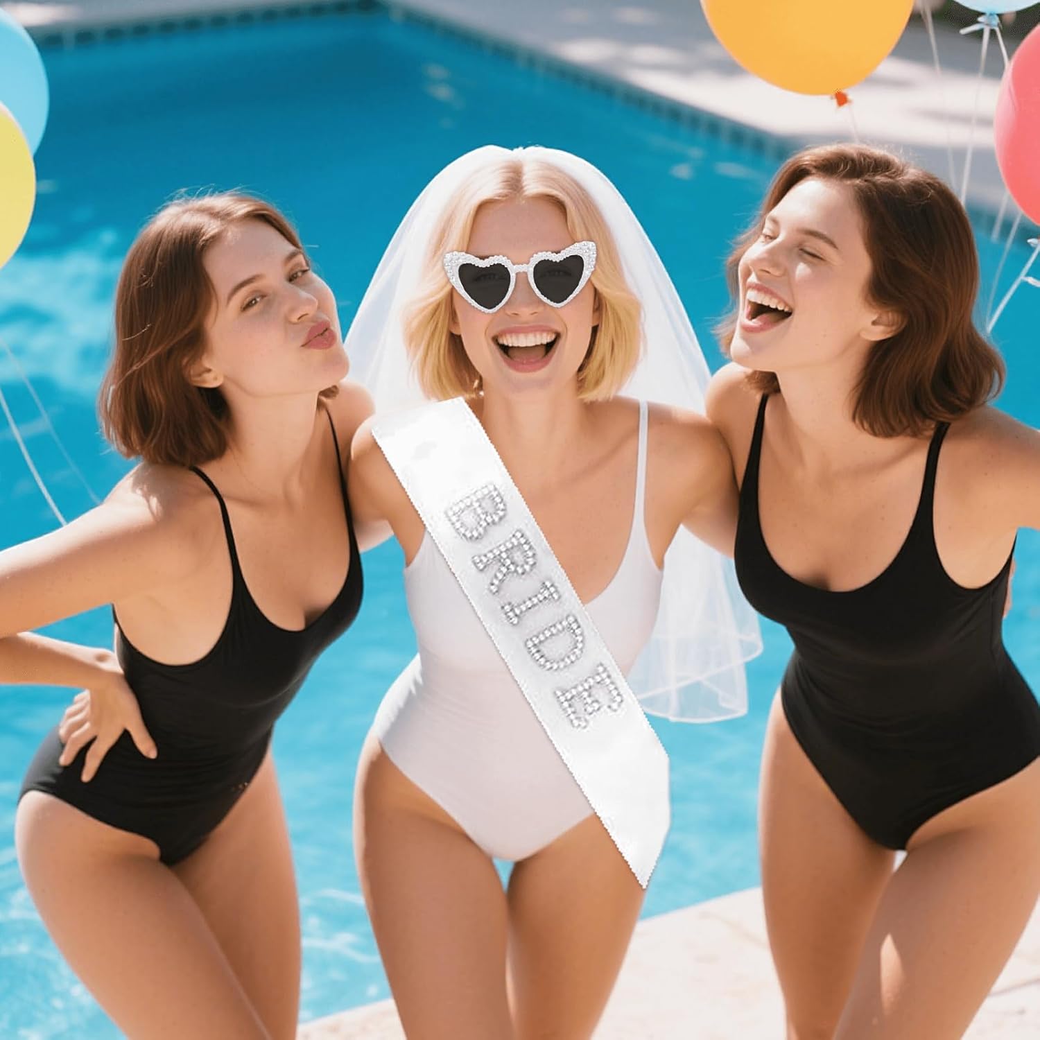 • The Ultimate Bride Accessory: This set features a white heart shaped pearl sunglasses and an elegant white pearl ‘BRIDE’ sash, slay the photos and look absolutely stunning. No bachelorette party is complete without this iconic bride sunglasses & sash making an appearance