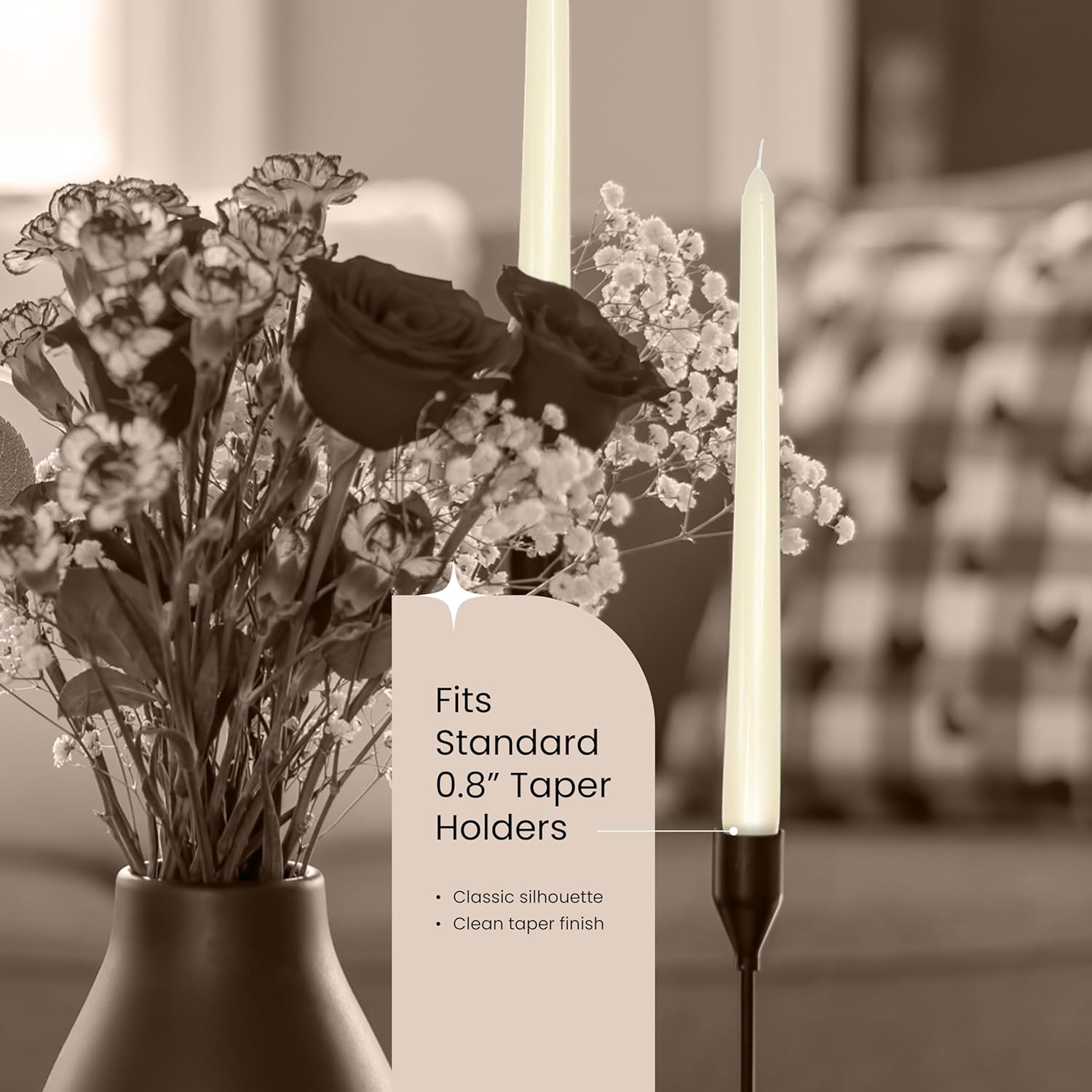 • Secure Fit in Most Candle Holders – Designed with a classic 0.8” tapered base, these long candles fit most candlesticks securely. Ideal for dining tables, mantels, or event centerpieces, ivory stick candles offer stable, dripless light for any occasion.