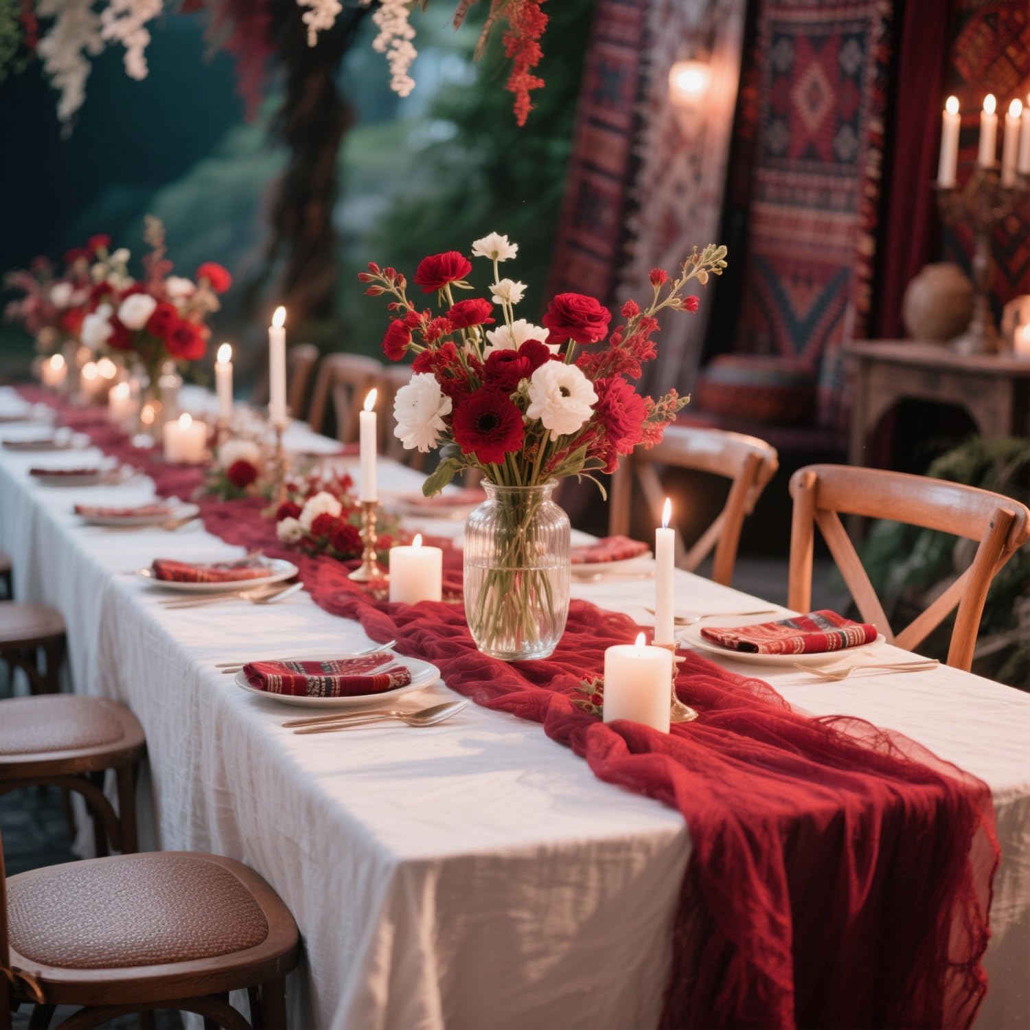 • 🍎【Soft & Durable Material】Made of natural cheese gauze fabric, soft to touch, comfortable and long-lasting. Wrinkled design cheese cloth farbic, delicate edges and stitches, adopts seamless technique makes this red sheer table runner more graceful than traditional fabrics. The boho wedding table runner red is sheer, natural drape, lightweight and skin-friendly. Soft table linen with gorgeous finished edges drapes gracefully across your banquet table.