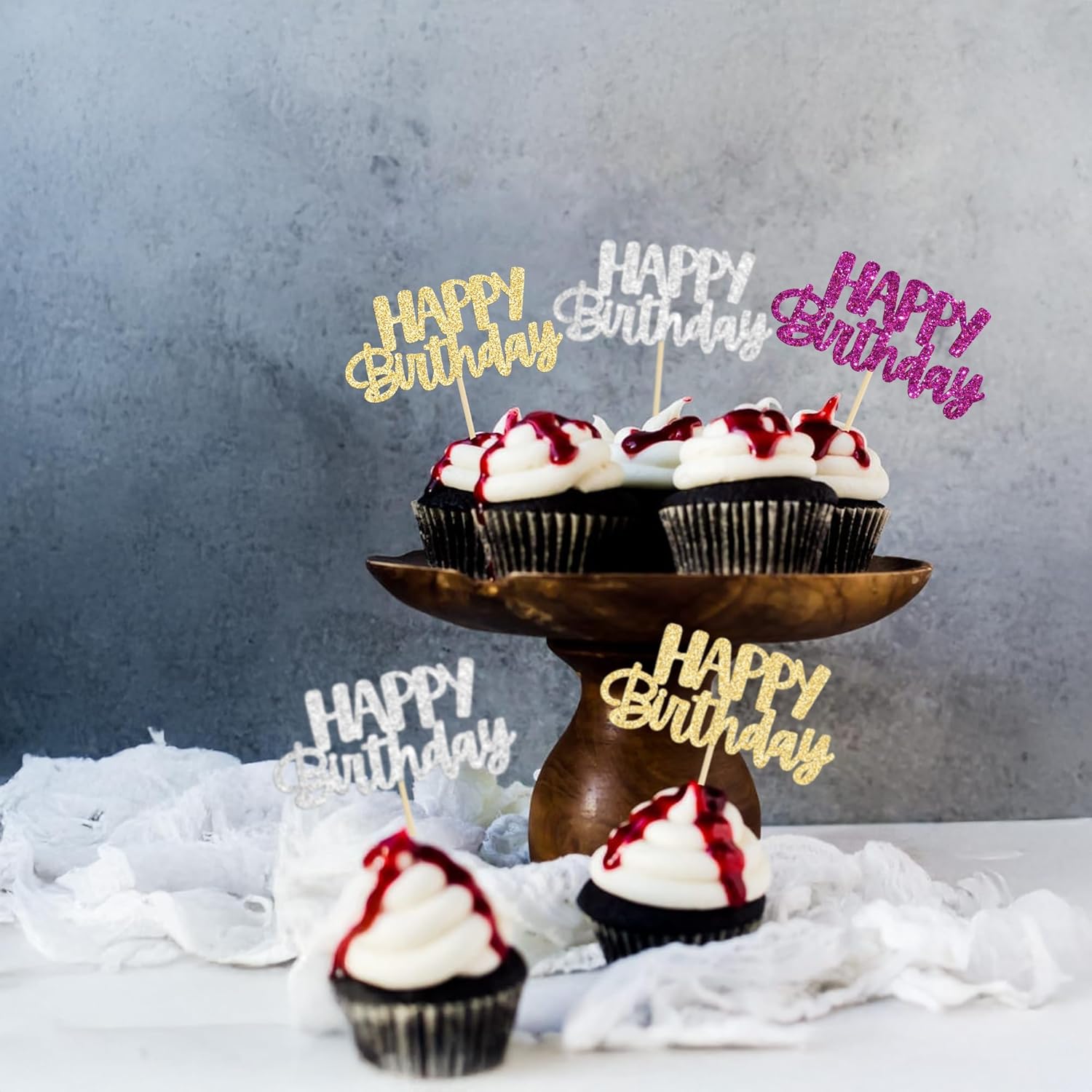 • 🌟 Premium Material: These glitter happy birthday cupcake Toppers are made of high quality paper and food-grade toothpick, very safe to put them on cakes, cupcakes, ice cream, fruits, pie, dessert, cheese or any dish and food appetizer you want to decorate.