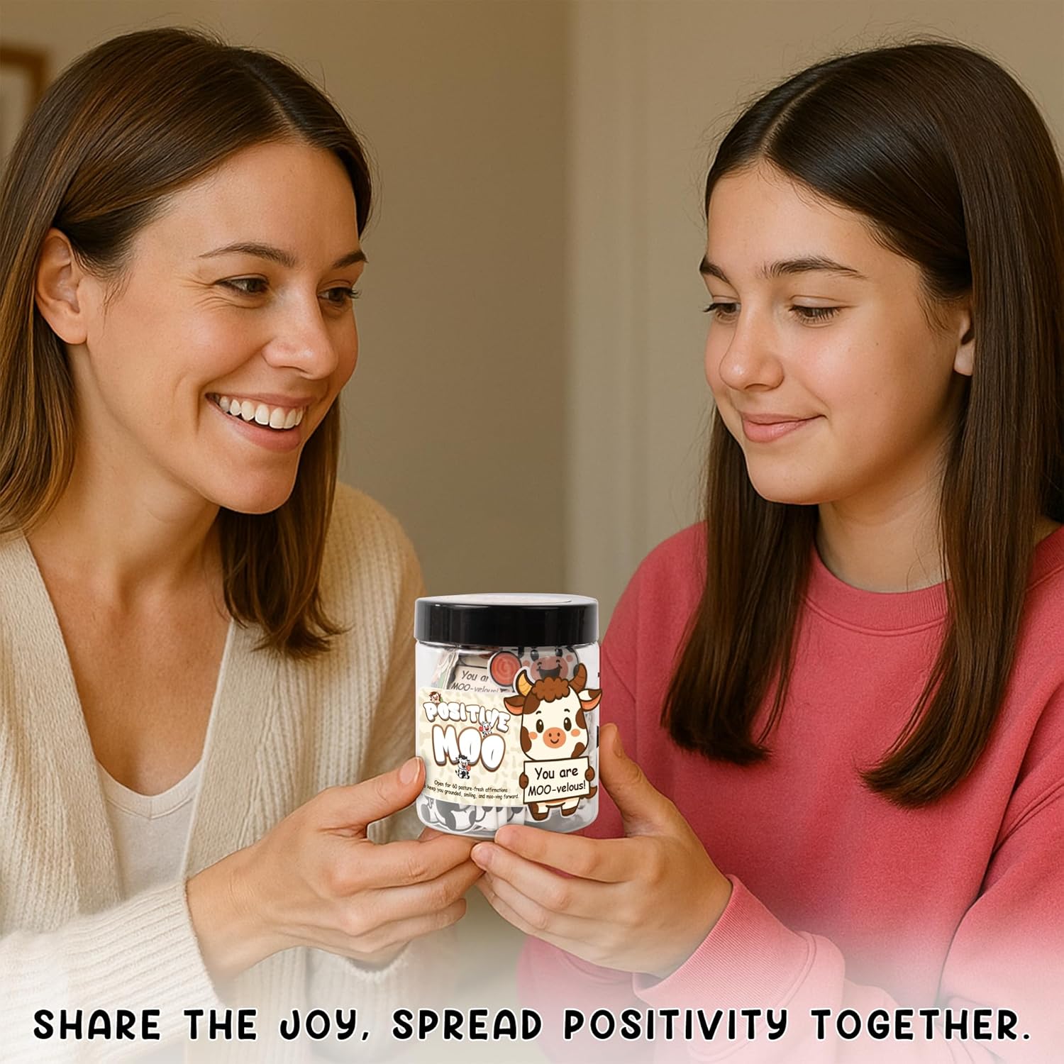 • 💖 Trendy, Funny, and Relatable Self Care Gift The Positive Moo Jar combines the charm of funny cow gifts for women, the calm of a stress relief jar, and the thoughtfulness of an emotional support gift. It’s a blend of cute cow stuff and inspirational jar messages that make it a unique, trendy, and heartwarming choice for teen girls, coworkers, teachers, or anyone who could use a smile.