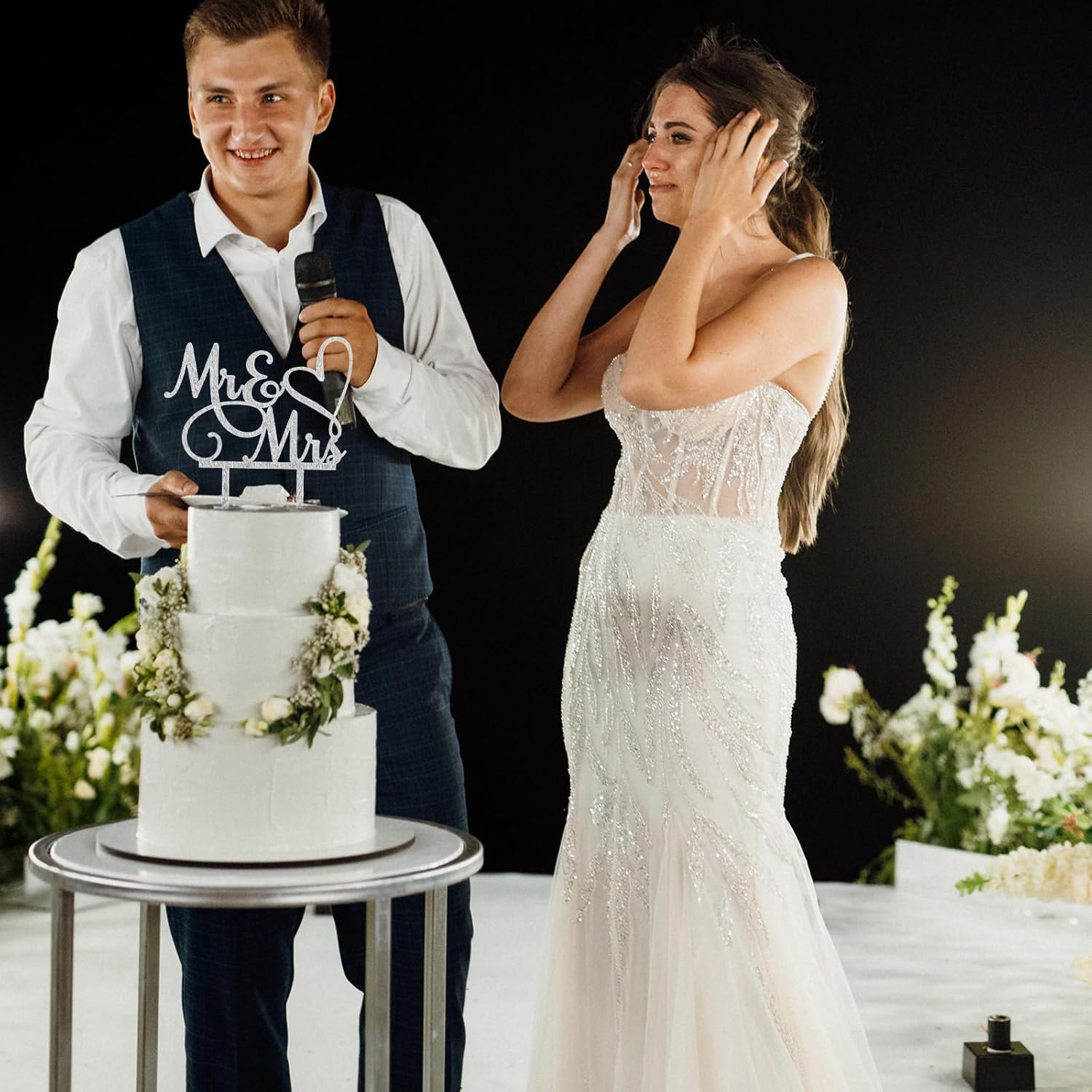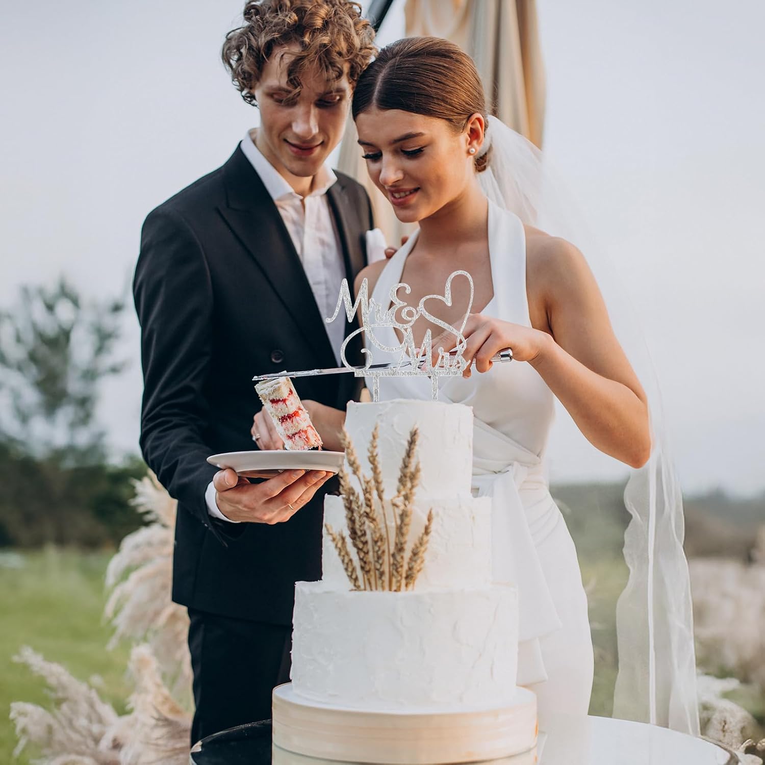 • 【Ideal Wedding Cake Decoration】:The mr and mrs wedding cake toppers is the perfect addition to your wedding cake decorations. Its sophisticated design and shimmering silver color create a memorable centerpiece for your special day.