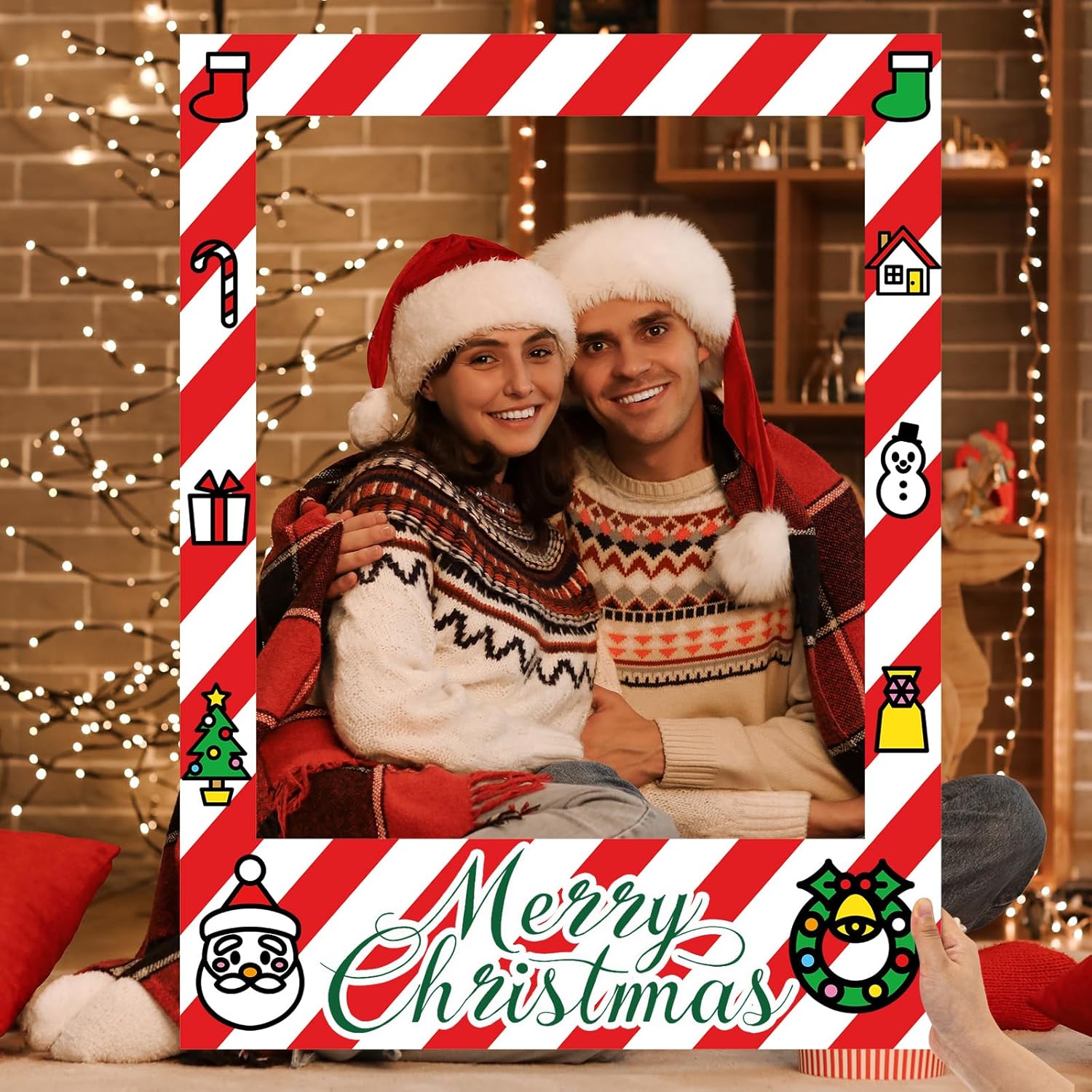 32 x 24 Inch Large Blank DIY Photo Booth Props Picture Frame Party Frame DIY Photo Booth Props Selfie for Halloween Christmas Birthday, Holiday Party (Stripe,Christmas)