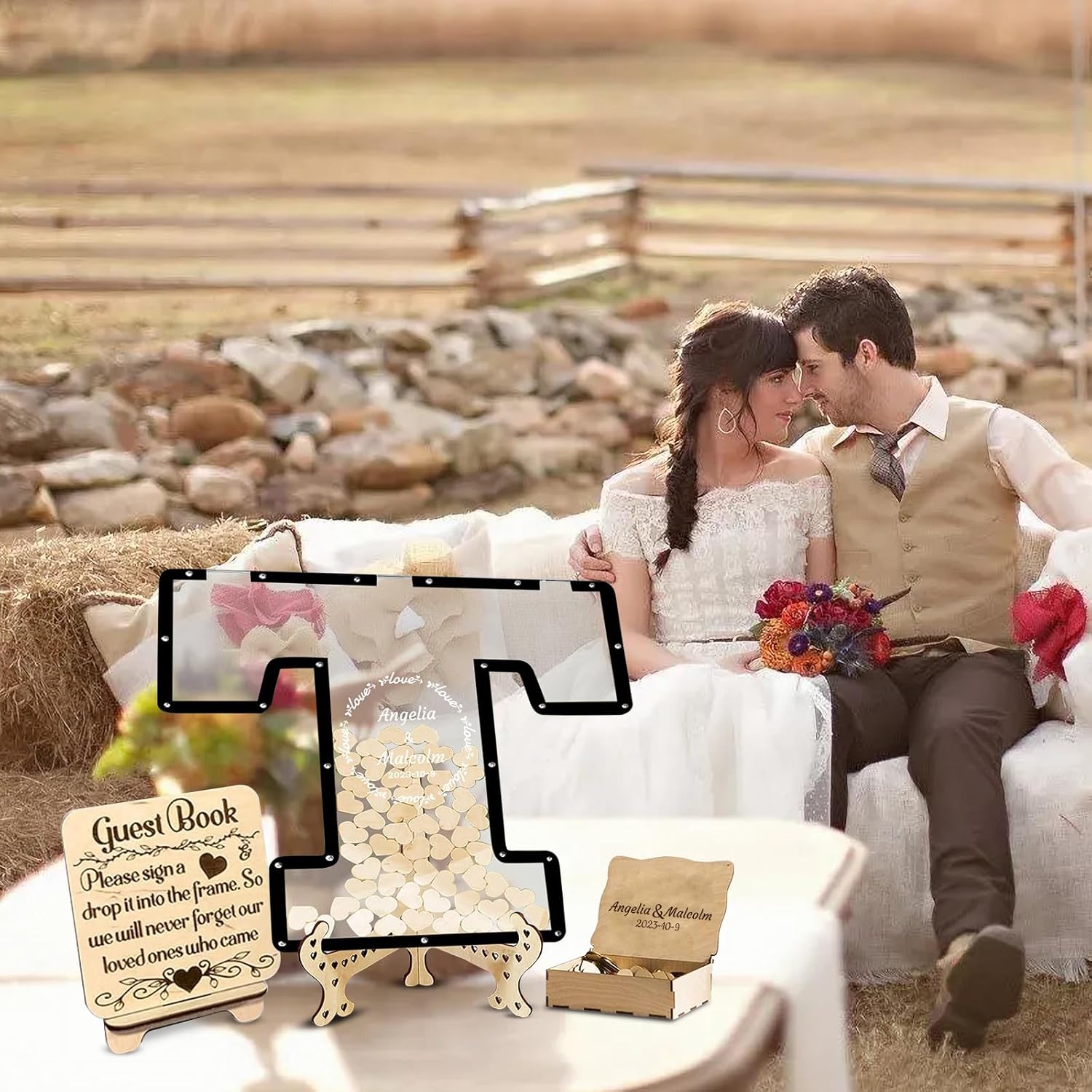 • Quality Materials: This custom wedding guestbook is crafted from wood and acrylic. The wooden elements provide a warm, natural feel and rustic beauty, enhancing the wedding's cozy atmosphere. The acrylic material offers clarity and transparency, ensuring messages and designs are beautifully displayed. Both materials are sturdy and practical, ensuring long-lasting preservation. This custom guestbook will serve as a cherished keepsake for years to come, preserving the couple's precious memories.