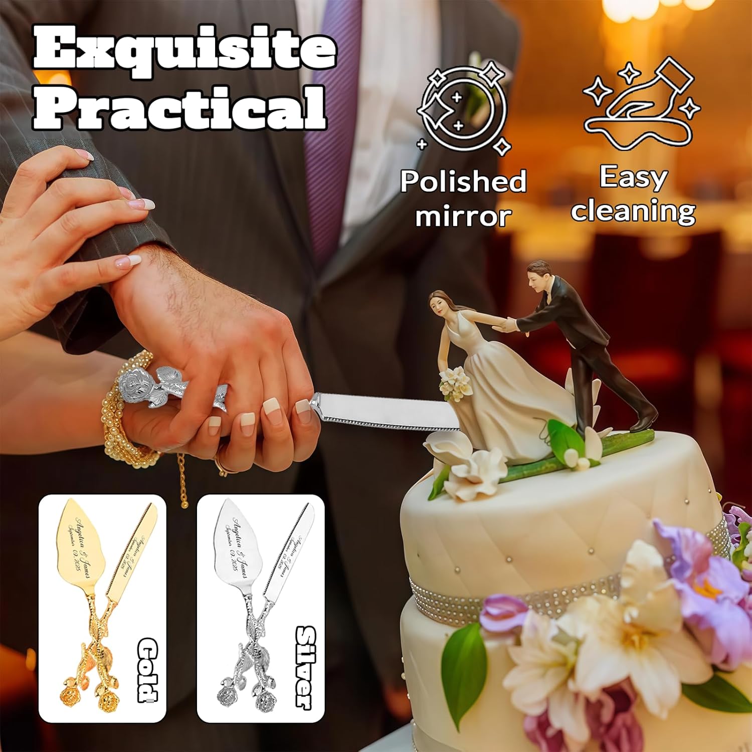 • Versatile Customized Wedding Gift - This personalized cake cutting knife set serves as heartfelt anniversary gifts, birthday presents, or Mother’s Day surprises; ideal for Valentine’s Day, housewarmings, holiday parties, and bridal celebrations