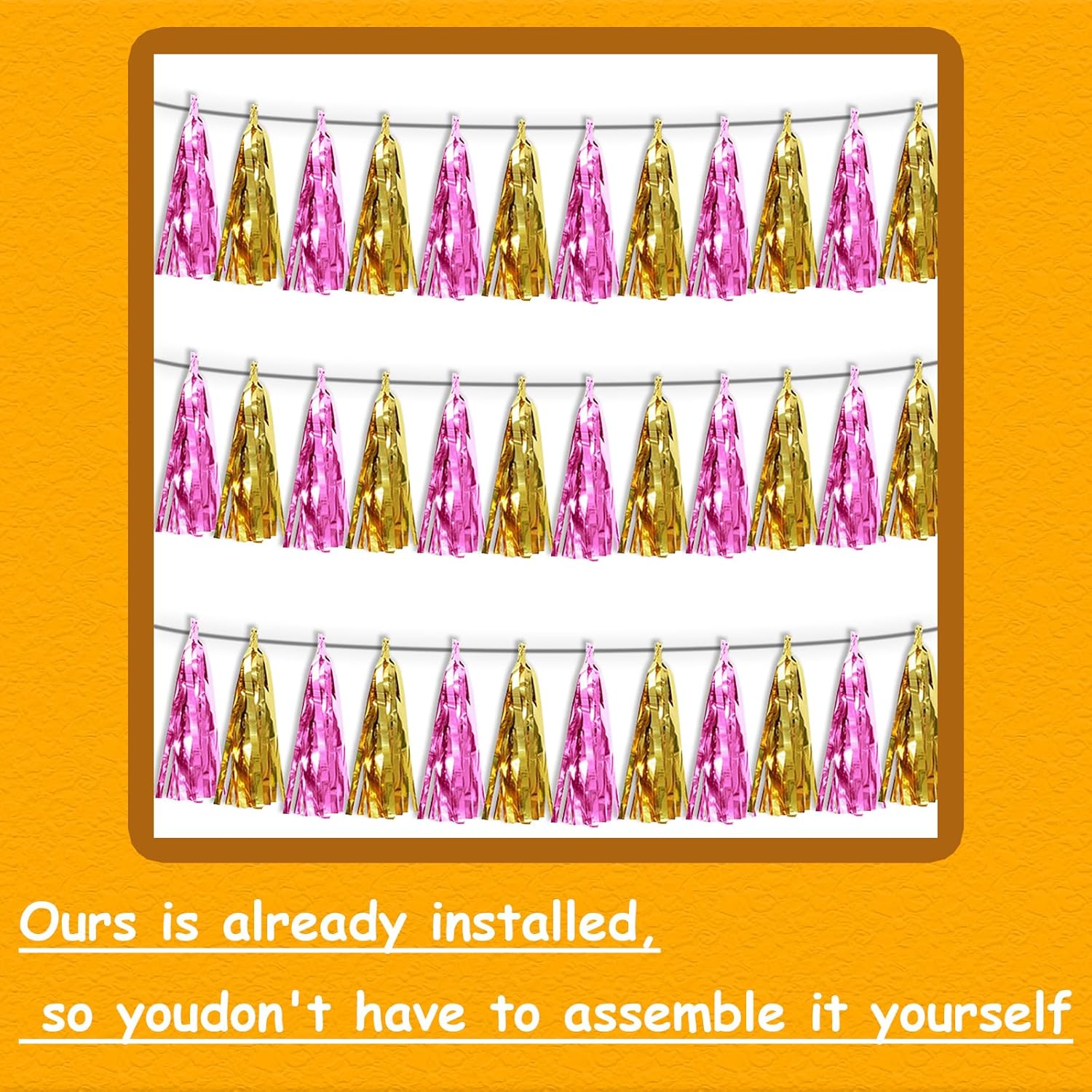 • 【Package Includes】The total length of the gold pink birthday tassels banner is 30 feet, divided into 3 strips, each 10 feet long. Each banner contains 15 tassels, and each tassel measures 14 inches, for birthday decorations many occasions uitable for Patriotic display, Homecoming Float, Christmas Float, ecorative metal trailers, graduation floats etc
