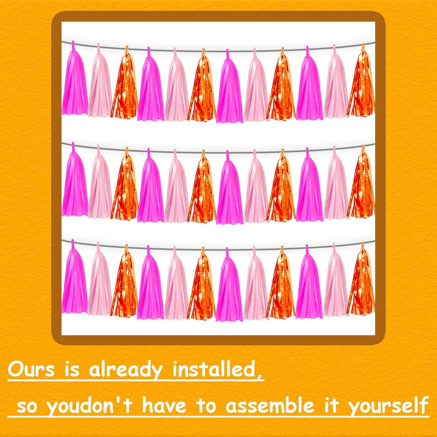 • 【Package Includes】The total length of the Hot Pink Orange LightPink birthday tassels banner is 30 feet, divided into 3 strips, each 10 feet long. Each banner contains 15 tassels, and each tassel measures 14 inches, for birthday decorations many occasions uitable for Patriotic display, Homecoming Float, Christmas Float, ecorative metal trailers, graduation floats etc