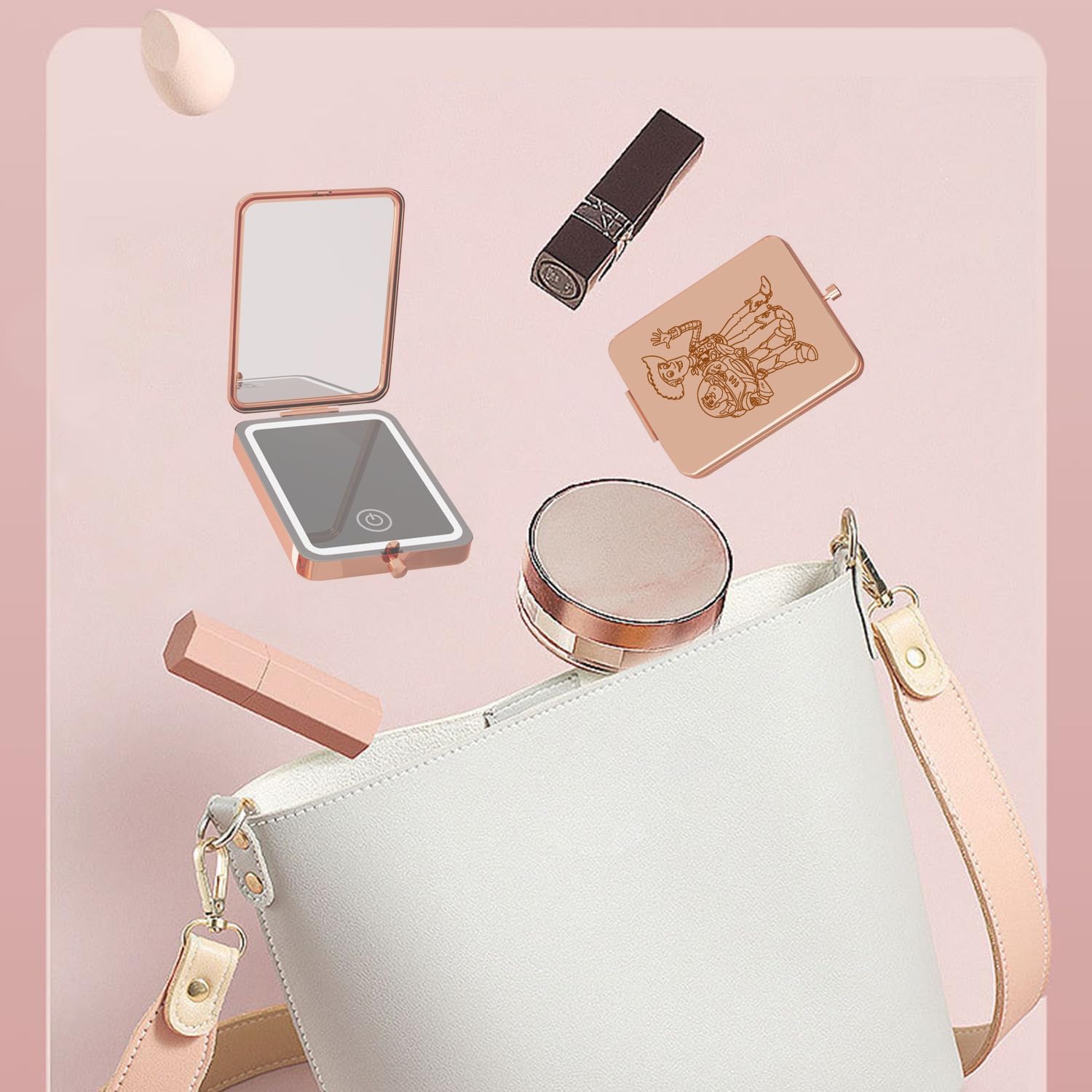 • 【Portable Design】: Compact handheld makeup mini mirror fits easily into your pocket, purse, handbag or makeup bag. Use it anytime, anywhere,travel essentials.