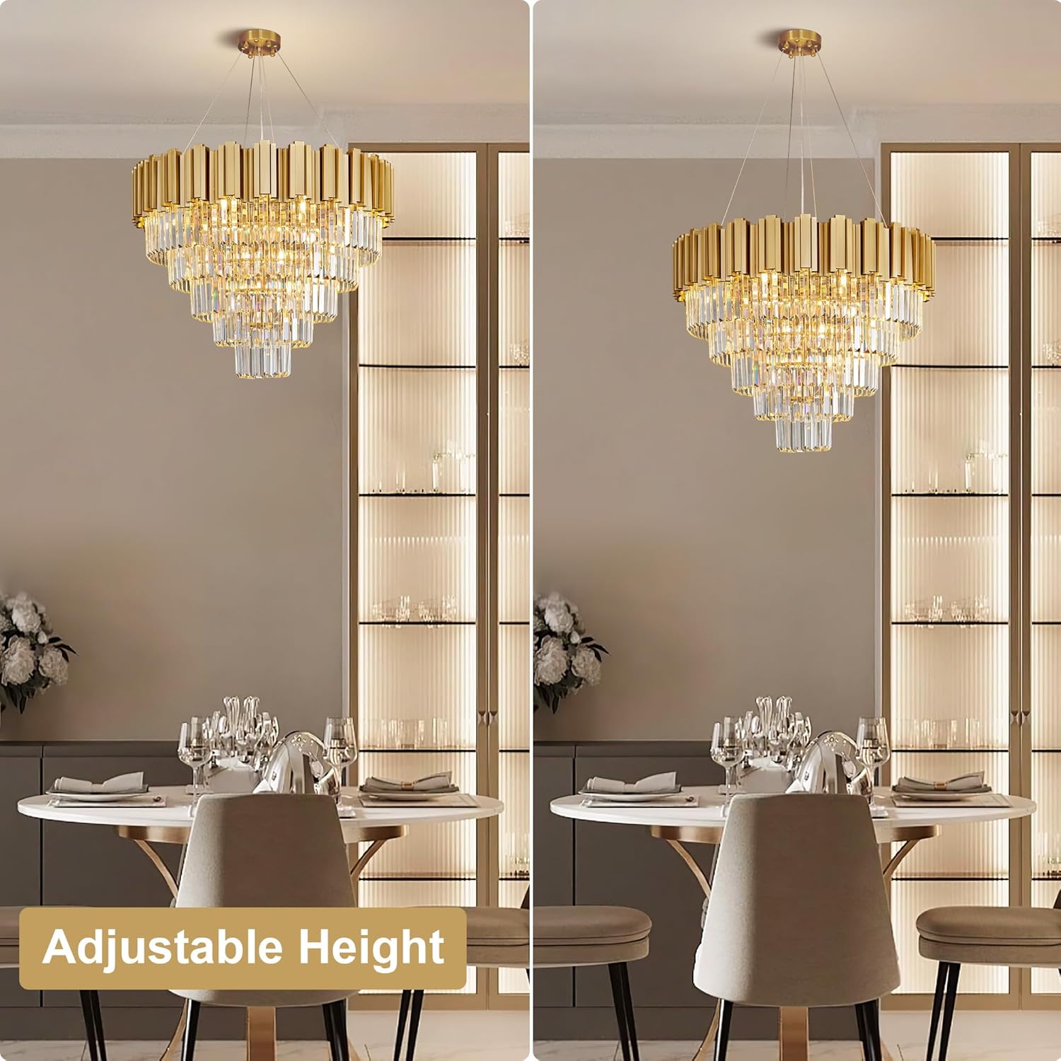 Modern Crystal Chandelier, 27.5" Gold Chandelier for Dining Room, 9-Light Luxury Round Chandeliers, 5-Tier Contemporary Light Fixture for Living Room, Bedroom, Foyer, Entryway