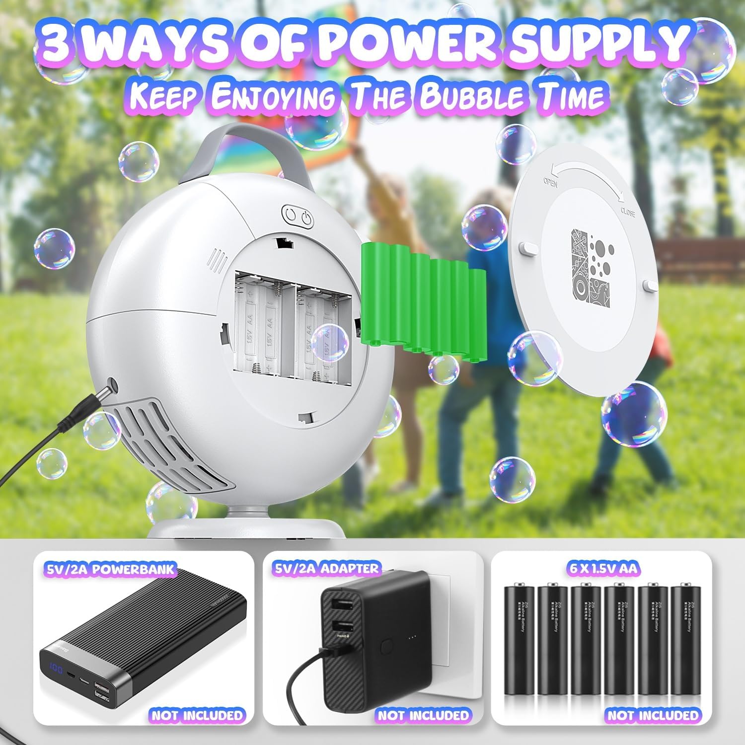 • 【Three-ways Powered Option】This electric bubble machine provides three power options - plugin, use batteries, or take it anywhere with a power bank! Whether indoors, outdoors, or on the move, brace yourself for limitless bubble fun with this professional bubble machine.