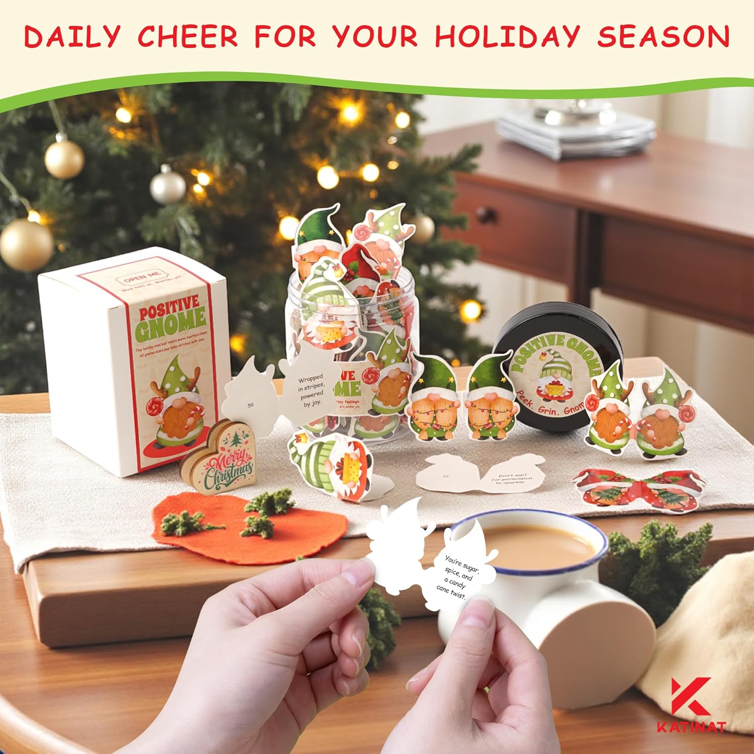 • 🎁 The Ultimate Feel-Good Gift This Positive Gnome Jar is packed with 60 cheerful notes to boost joy, ease stress & bring laughs—perfect christmas gifts for teens and women who need a holiday pick-me-up. Whether you’re looking for stocking stuffers for teen girls or stocking stuffers for women, this emotional support Gnome jar will brighten anyone’s day.