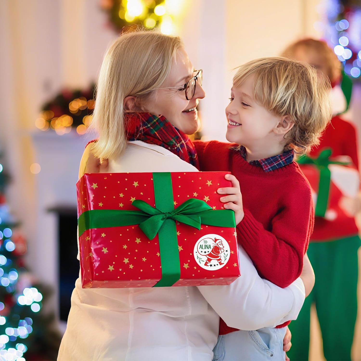 • Custom Santa Deer Design: These Personalized Christmas Stickers feature charming Santa and deer designs, including festive elements like bows. You can customize them with a name, turning them into a unique addition to any DIY gift or decoration
