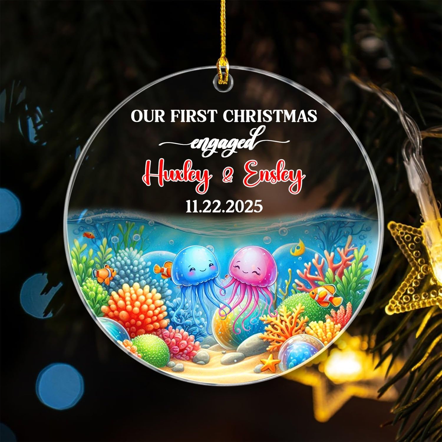 Personalized Our First Christmas Engaged Ornament Gift, Customized Date/Names Jellyfish Mr & Mrs Engaged Xmas Ornaments, Couple Jellyfish Together Christmas Ornament Gift for Engagement Anniversary