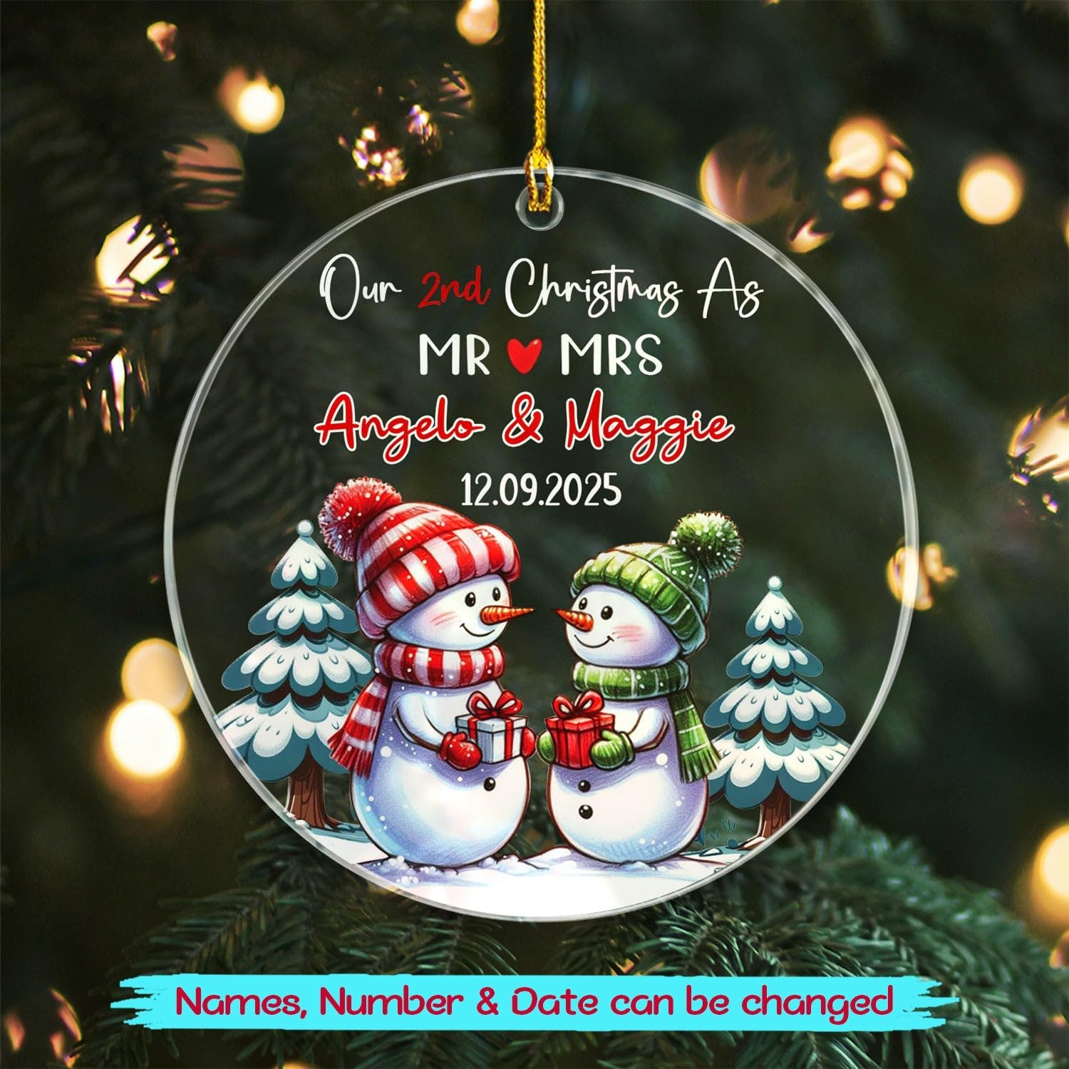 Our 2ND Christmas As Mr & Mrs Ornaments Gift for Boyfriends Girlfriend, Personalized Date/Name Mr & Mrs Snowman Together Christmas Ornament 2025, Customized Couple Snowman Ornament for Anniversary