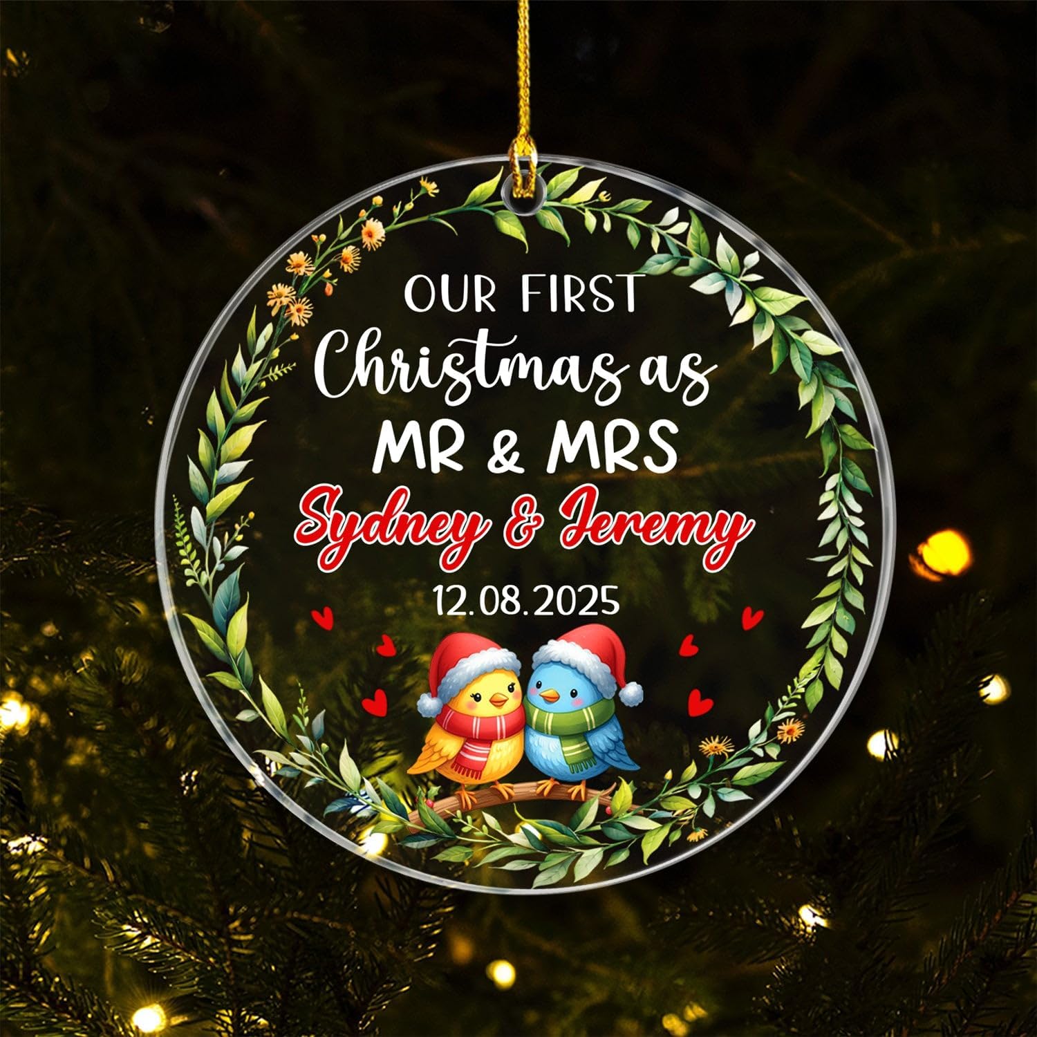 Our First Christmas As Mr & Mrs Ornament 2025, Personalized 1st Christmas As Mr & Mrs Bird Married Ornament Gift for Newlyweds Wedding, Customized Name & Date Anniversary Ornaments for Just Married