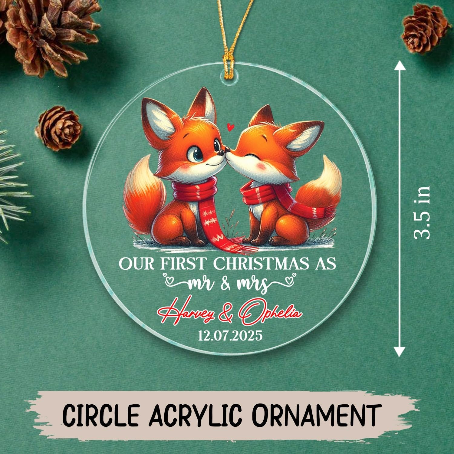Personalized Our First Christmas As Mr & Mrs Ornament, Custom Date/Name Mr & Mrs Fox Married Xmas Ornaments Gift for Wedding Anniversary, Fox Marriage Christmas Ornament for Newlyweds/Just Married