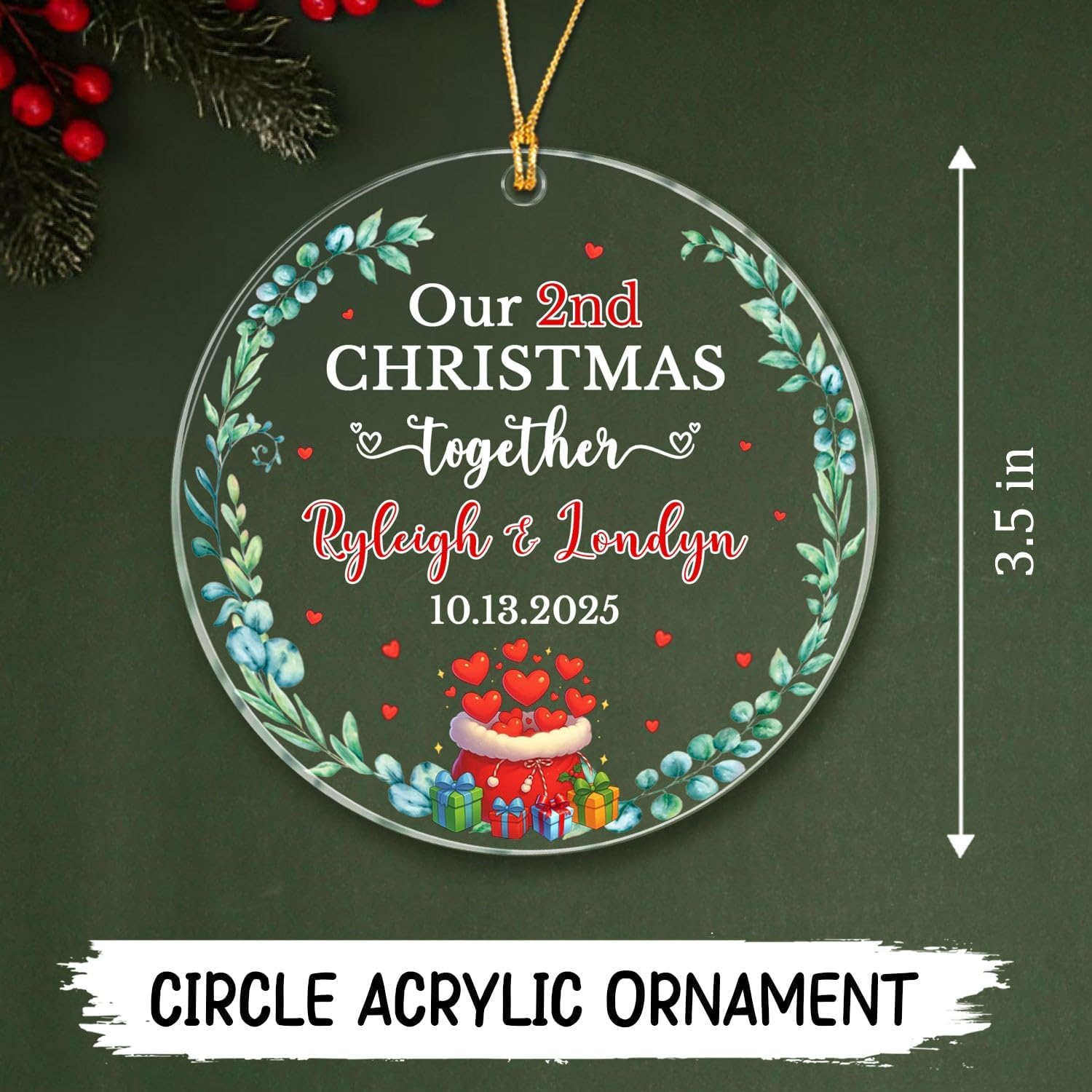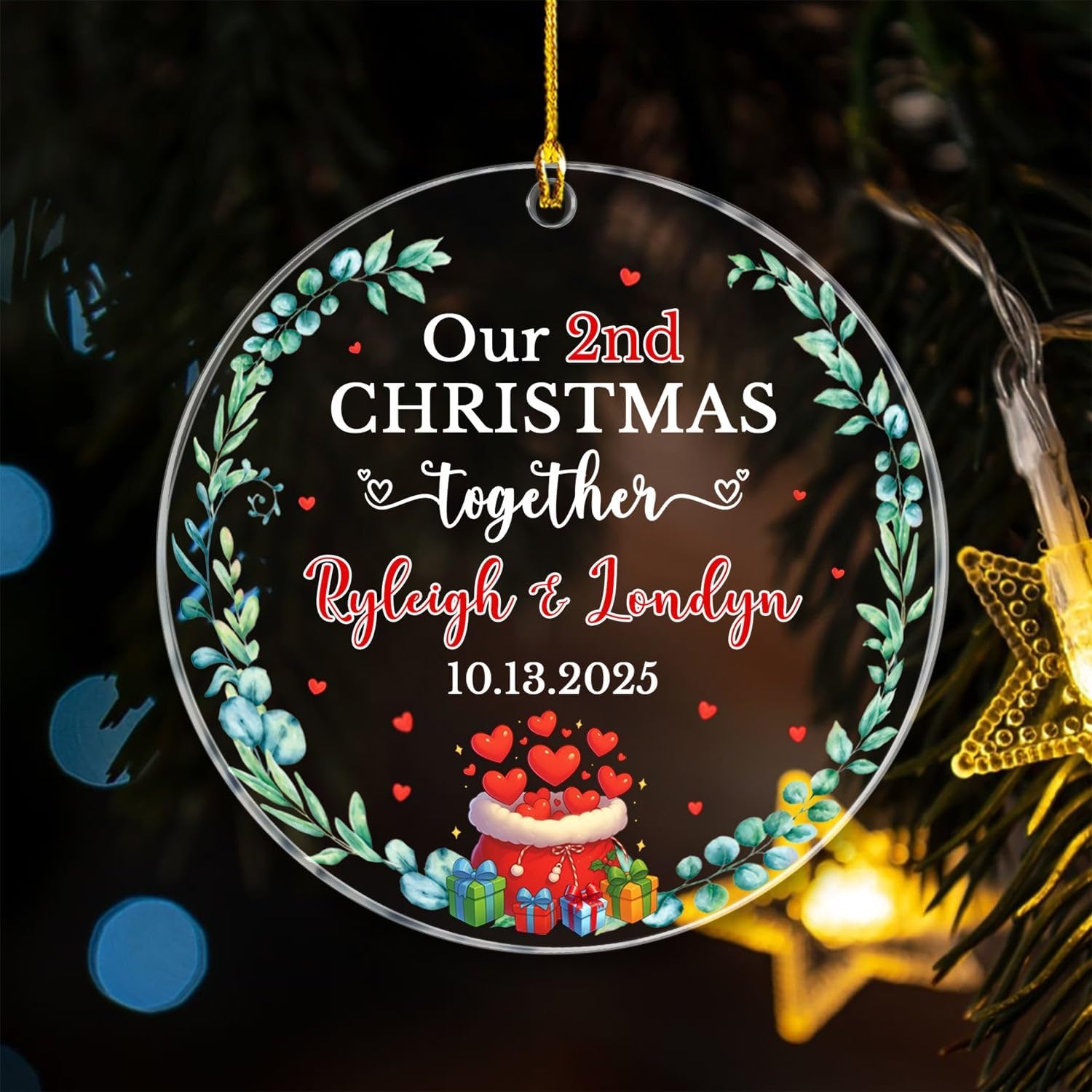 Our 2ND Christmas Together Ornament 2025, Personalized Date & Names Couple Together Xmas Ornament Gift for Dating Anniversary, Custom Mr & Mrs Christmas Ornaments for Women Men Boyfriend Girlfriends