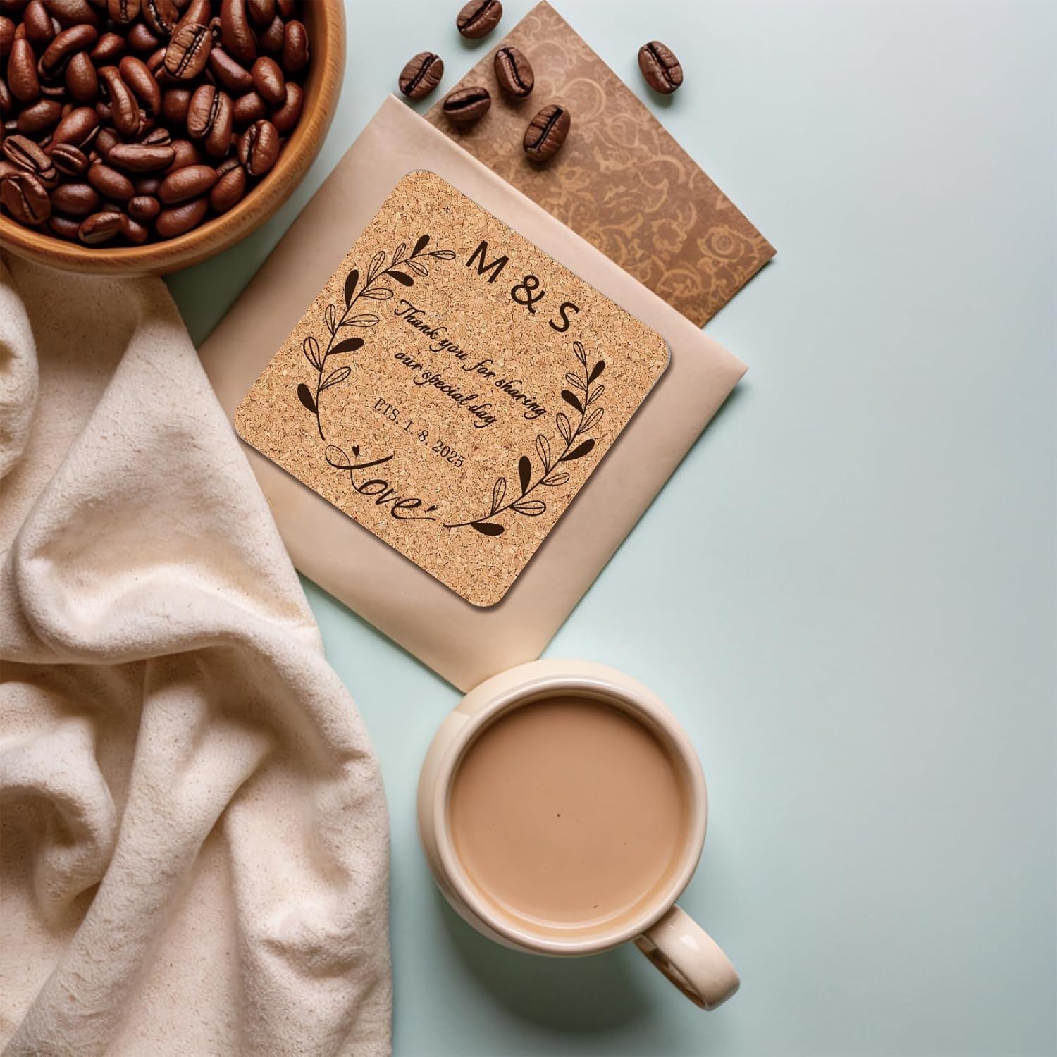 Custom Coasters Personalized Cork Coasters Bulk with Logo Wedding Personalized Cork Natural Wood Engraved Drink for Wedding Favors (Cork Coasters - Square)