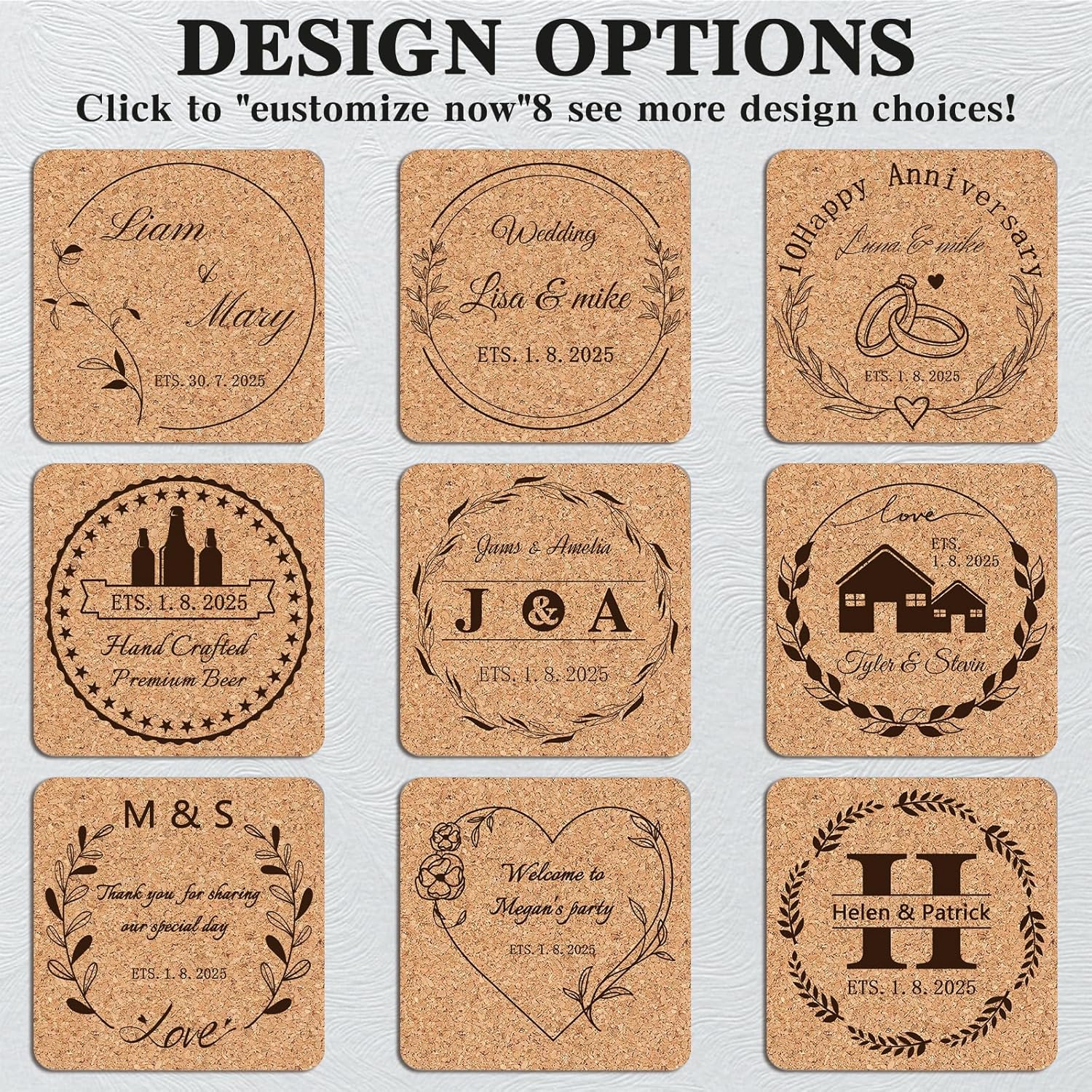 • Unique Photo Coasters and Branded Custom Designs:Turn memories into decor with our photo coasters, or promote your brand with custom coasters with logo. For a refined touch, our personalized cork coasters and personalized coasters for drinks combine practicality with style. Whether for weddings or everyday use, these coasters make a lasting impression