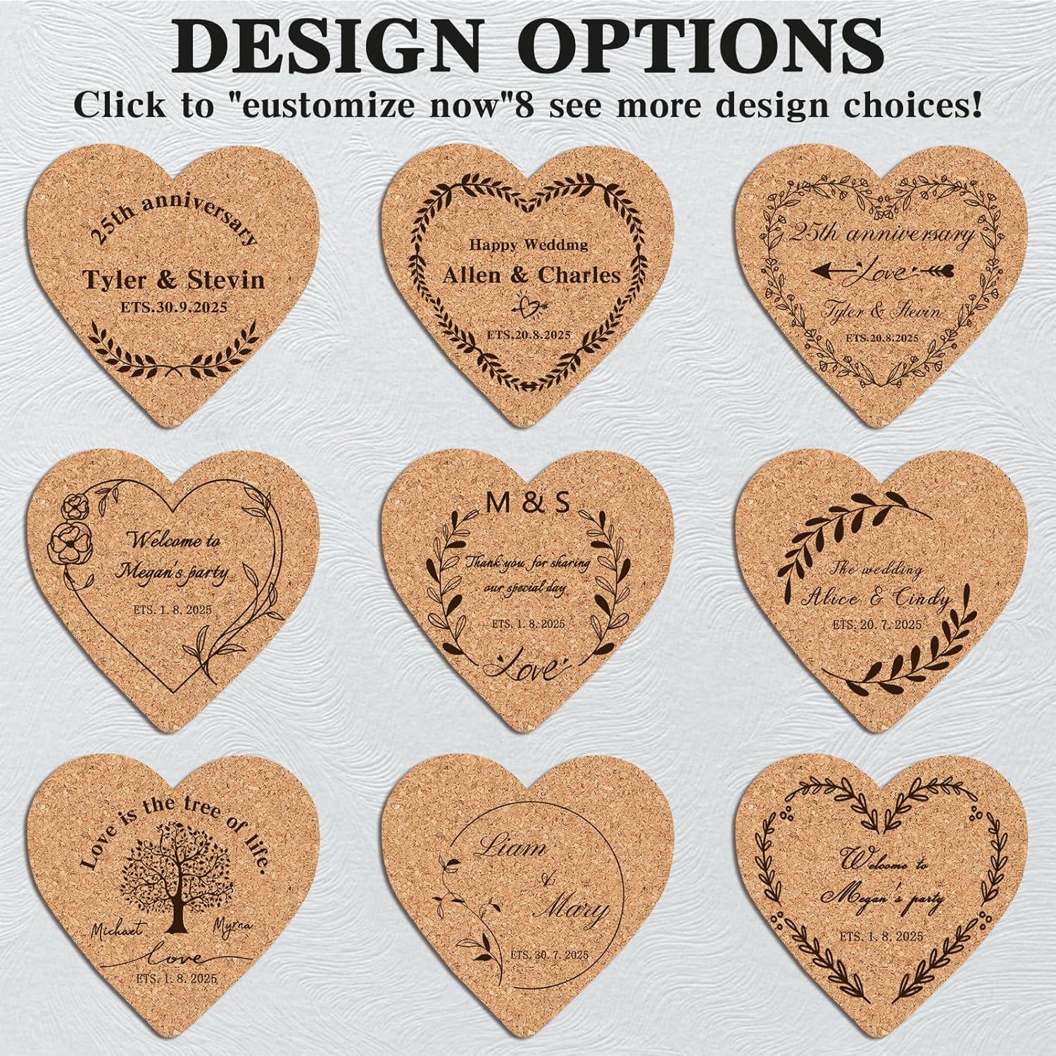 Custom Coasters Personalized Cork Coasters Bulk with Logo Wedding Personalized Cork Natural Wood Engraved Drink for Wedding Favors (Cork Coasters - Heart)