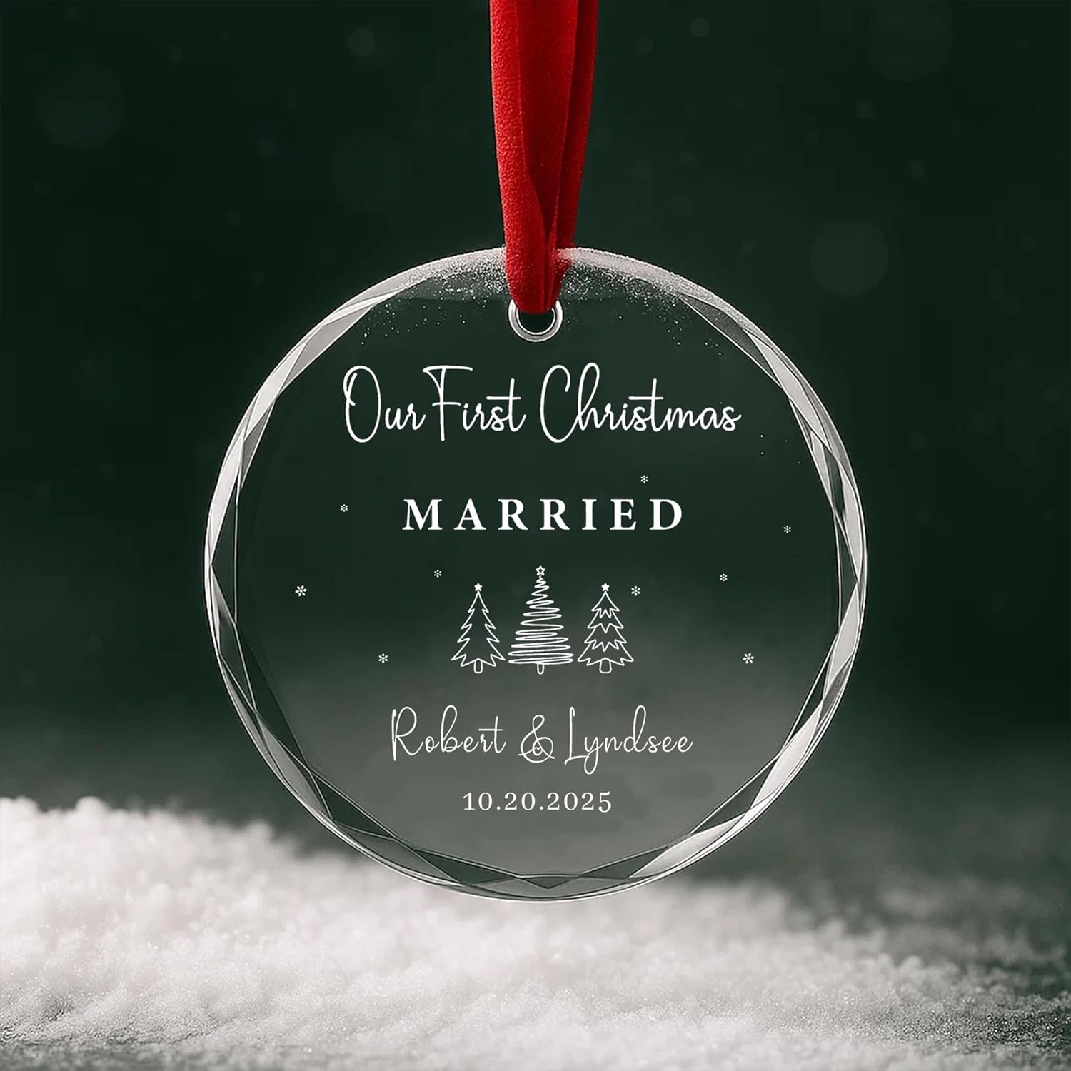 • Custom Engraved Glass Ornament 2025 – Personalize with couple names and special date, making it a timeless keepsake for weddings, engagements, anniversaries, or first Christmas celebrations.